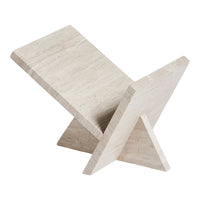 Mountain is beautifully formed in solid travertine. An artistic decorative piece, that abstractly captures the graphic outline of the great mountains in nature. Representing the feeling of presence and equanimity. The paper weight is great to set on top of books or as a sculptural object in a shelving system.