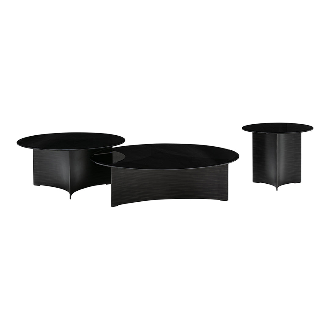 Available in three precisely calibrated sizes—small (19.7" diameter × 16.1" height), medium (29.5" diameter × 13.6" height), and large (39.4" diameter × 11" height)—the Arc collection offers graduated proportions that can be arranged individually or as nested compositions to create dynamic interior landscapes. The dimensional progression follows a thoughtful inverse relationship between diameter and height, ensuring each size maintains its distinctive character while harmonizing with the others.