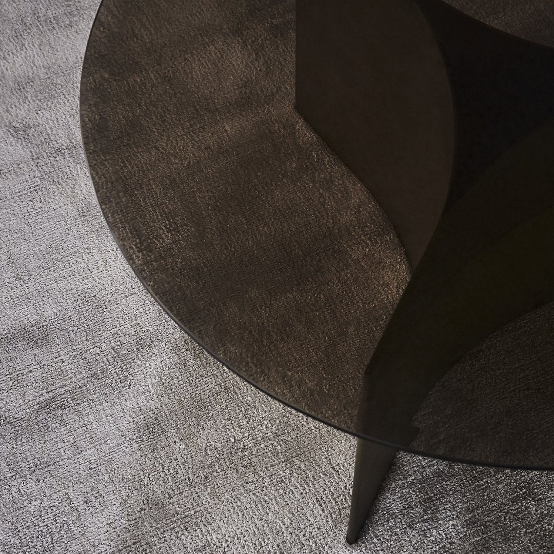 The floating glass tabletop—available in either sophisticated black or rich tinted brown—completes this visual narrative by simultaneously concealing and revealing the base beneath. The translucent surface creates a captivating interplay of light, allowing glimpses of the sculptural foundation while reflecting its surroundings in subtle, shifting patterns.