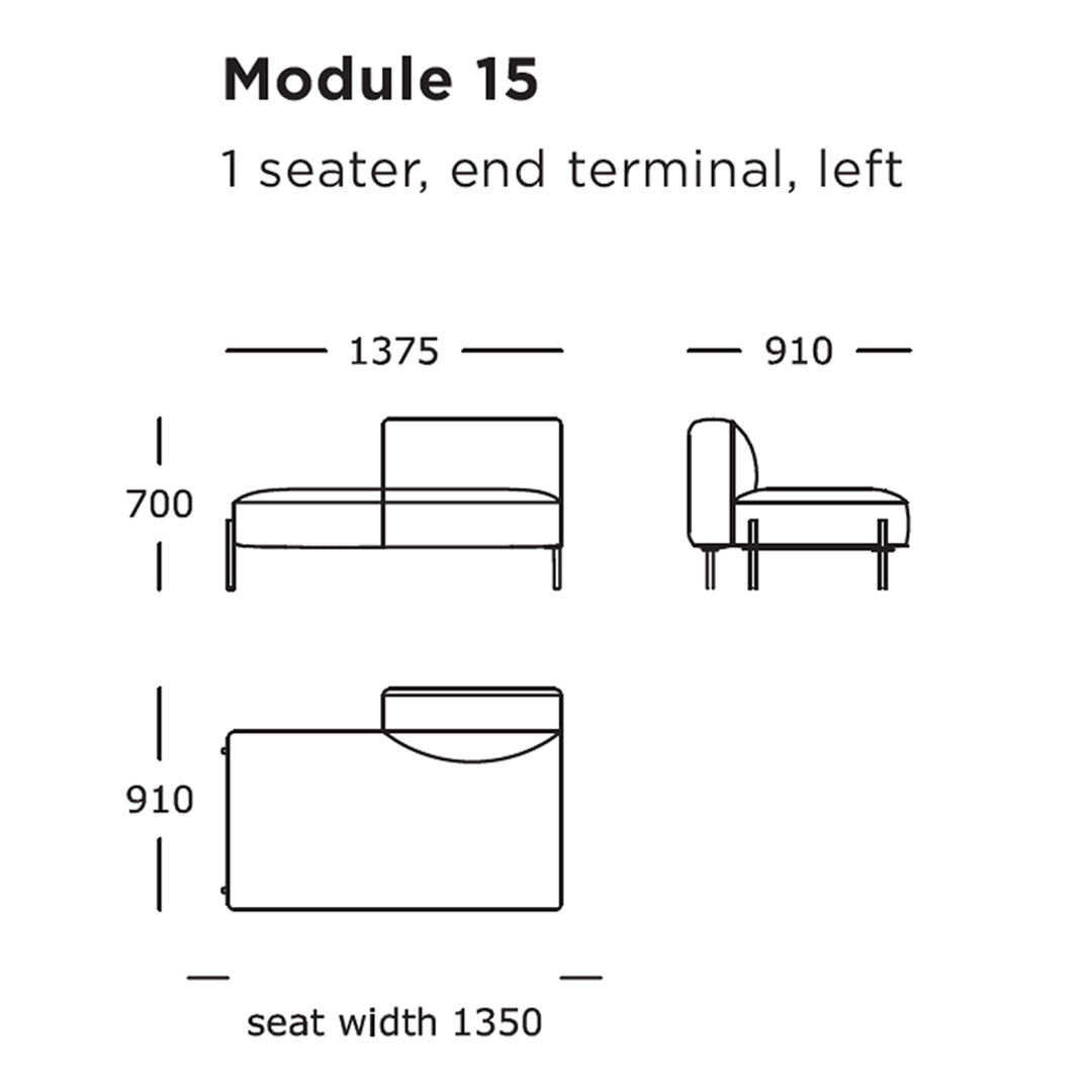 Module 15 (1 Seater, End Terminal, Left): 54.1" W x 35.8" D x 27.6" H | 16.1" SH