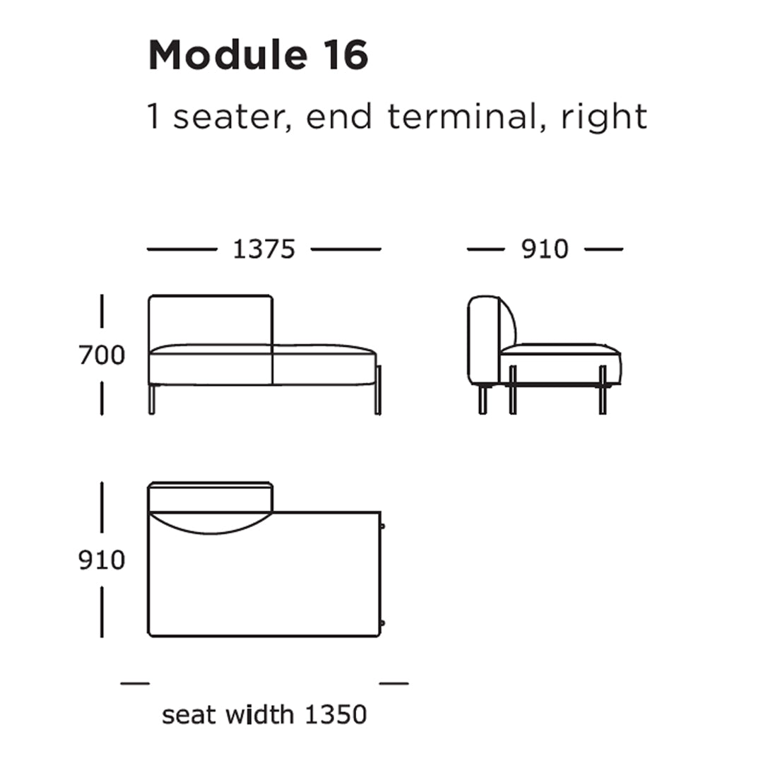 Module 16 (1 Seater, End Terminal, Right): 54.1" W x 35.8" D x 27.6" H | 16.1" SH