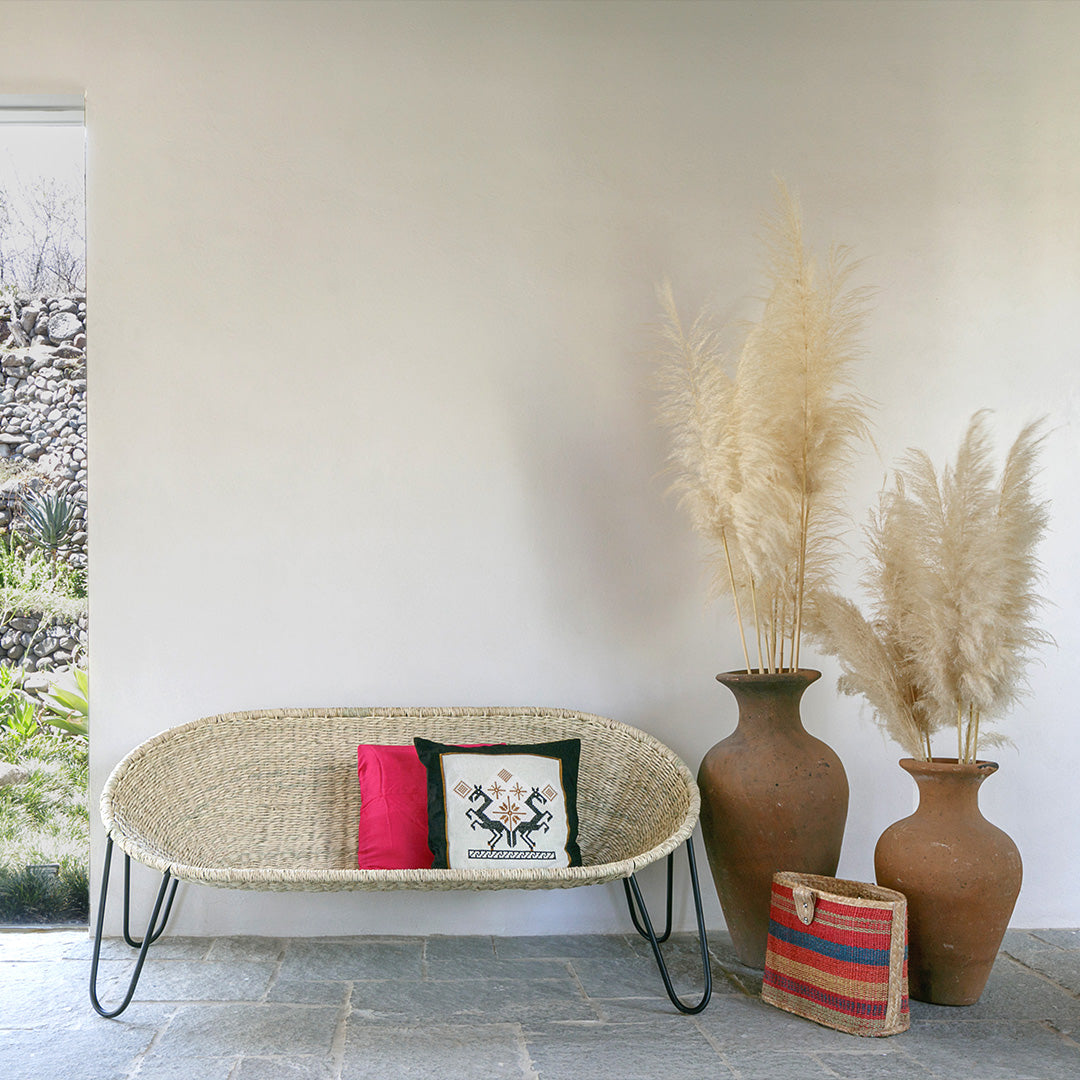 Inspired by a nest, the Todos Santos collection, woven in natural palm fiber or synthetic fiber, brings warmth and a relaxing vibe to the environment. On a patio or balcony, with a good book, on the beach, in the country, alone or with company, the Todos Santos collection is versatile and comfortable.