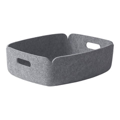 Made from recycled plastic bottle fibers transformed into soft polymer felt, the Muuto Restore Tray showcases the same eco-conscious construction as Tolvanen's celebrated basket series. The shallow rectangular form creates an ideal catch-all for desktop essentials like pens, business cards, keys, or jewelry, while the gentle raised edges prevent items from sliding while maintaining easy access to contents.