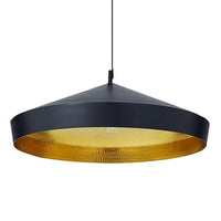 Beat Flat is a large matte black ceiling light which features a contrasting warm, golden interior. Made from hand spun brass sculpted by artisan craftsmen in Northern India, the creation of this Beat light is part of an ancient process that takes four days to complete. Featuring our intergrated LED module, the beaten interior is re-purposed to refract and reflect a soft and warm luminosity and the architectural scale gives off a greater light output.
