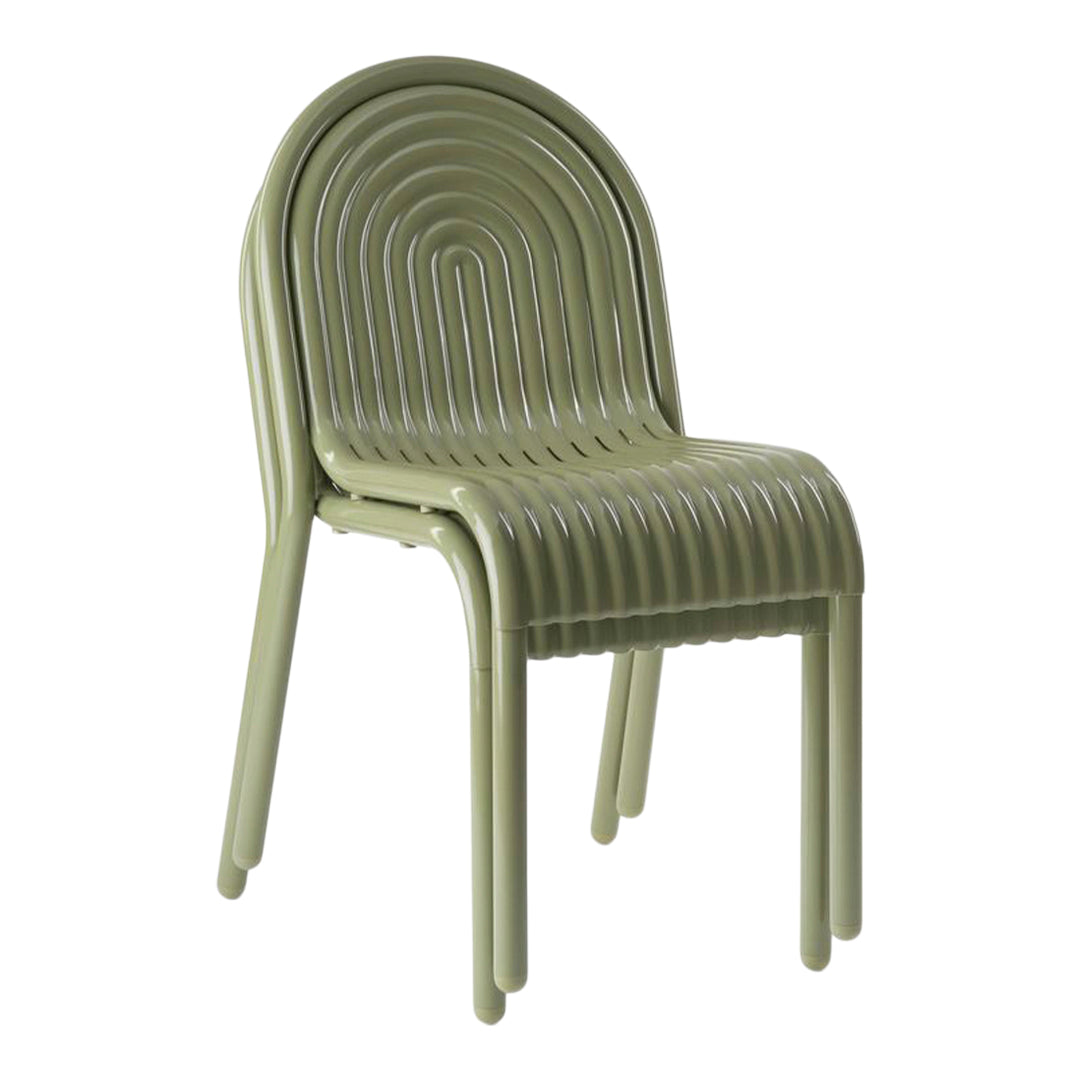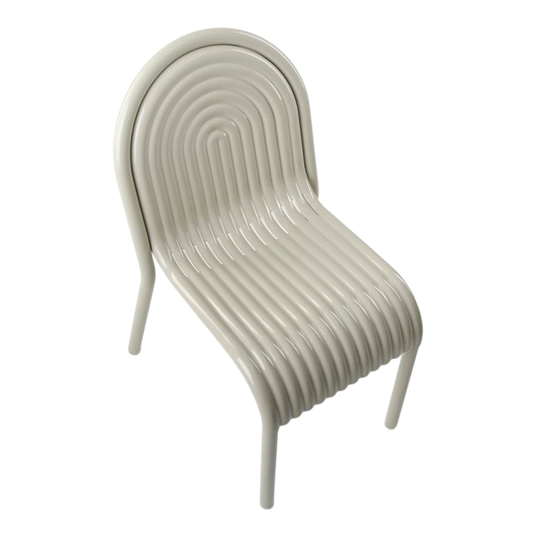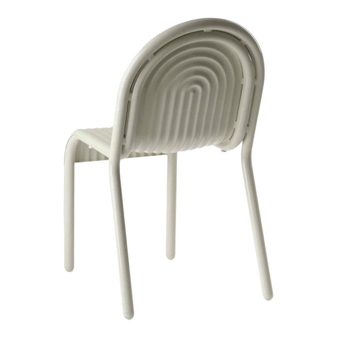 Discover the GROOVE Side Chair is part of Tom Dixon's first outdoor collection. Inspired by the 2021 HYDRO aluminium chair, the GROOVE Side Chair features distinctive art deco style raised ridges and is made from premium aluminium. The GROOVE Side Chair utilises cutting-edge manufacturing techniques for superior durability and features a high-quality powder-coated finish, ensuring suitability for outdoor use and is both solvent and VOC-free. Developed from over a decade of research, the GROOVE collection includes accompanying outdoor cushions and allows for efficient stacking and storing. Available in either MOSS or PUTTY.