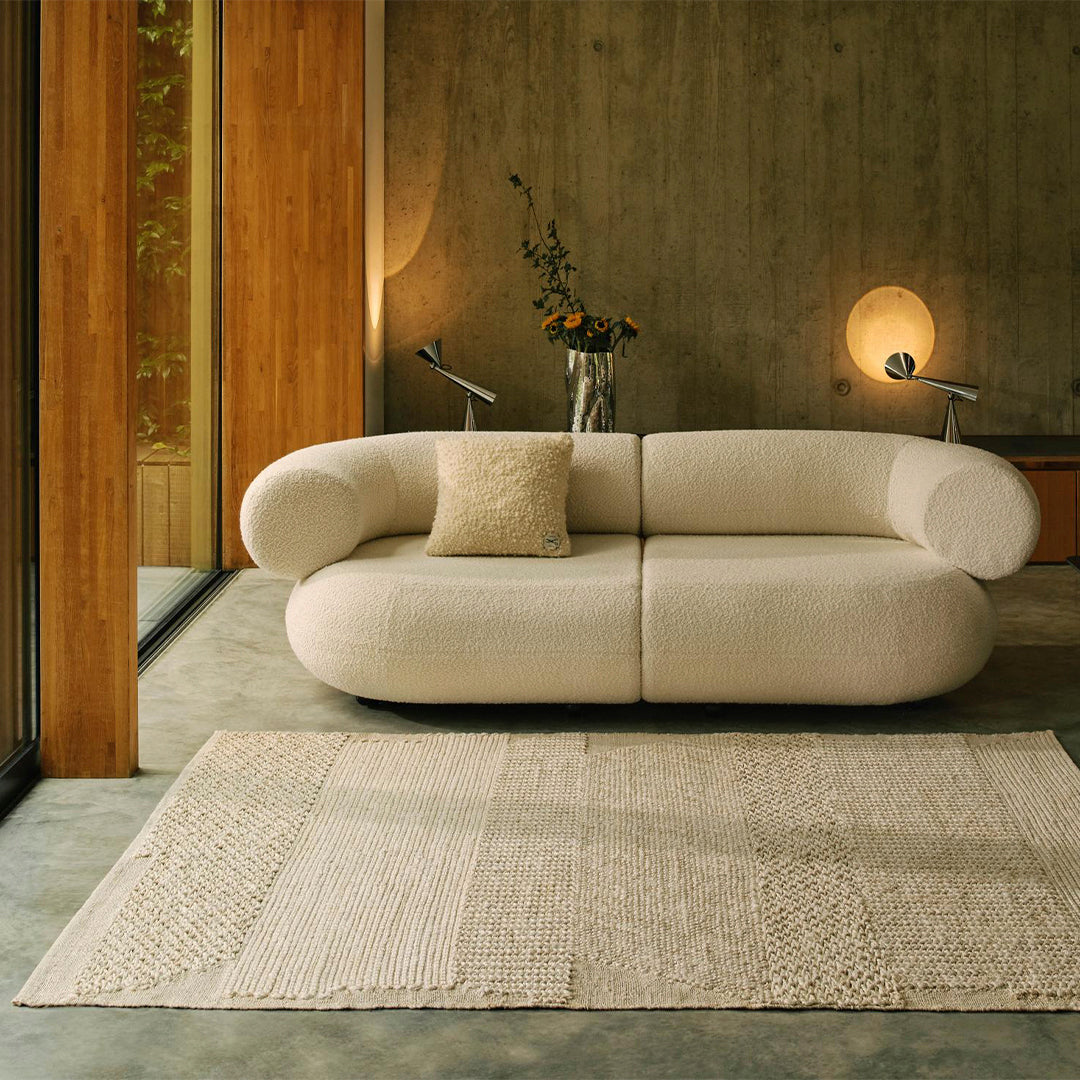 The Knotty Rug is inspired by Tom Dixon’s love for stacking blocks of shapes, which is reflected in its bold yet subtle design. Handcrafted from irregularly spun bleached jute yarn, the rug features a range of weave patterns that create a rich, tactile surface. The interplay of these patterns adds depth and texture, bringing an organic and earthy feel to any space. Available in two sizes, its natural tones effortlessly connect with nature, adding warmth and character to a space.