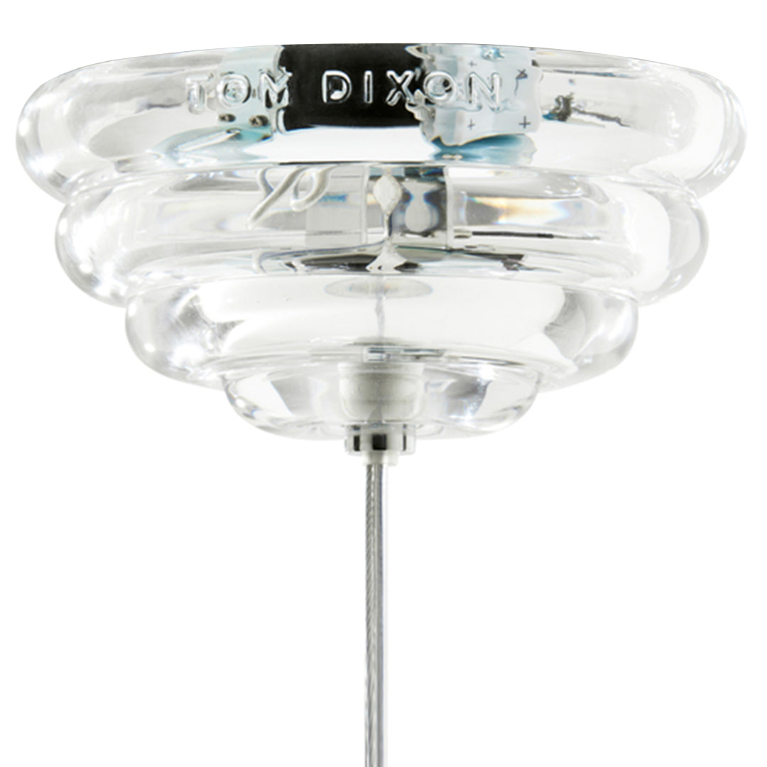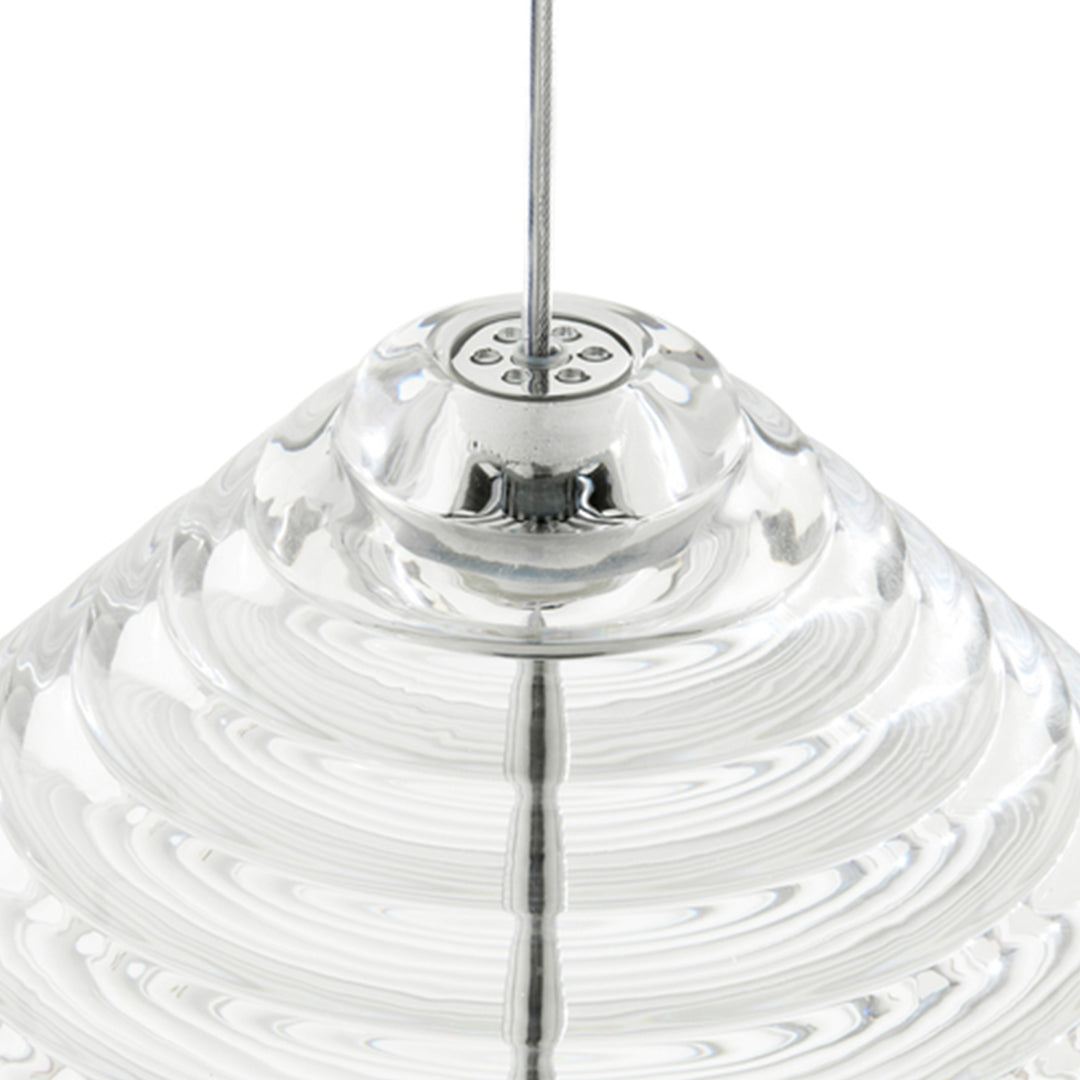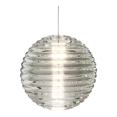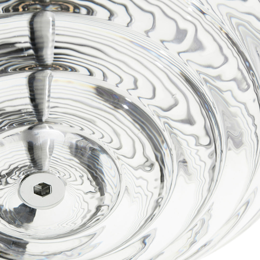 Press is made of fat, chunky coils of pure and clear glass, pressed in iron molds under tons of pressure to create heavyweight grooved glass artefacts. Bold in silhouette and simple in function, the ribbed glass of Press lights refracts and diffuses the interior light source from the integrated LED and projects linear and stripy patterns across its surroundings.
