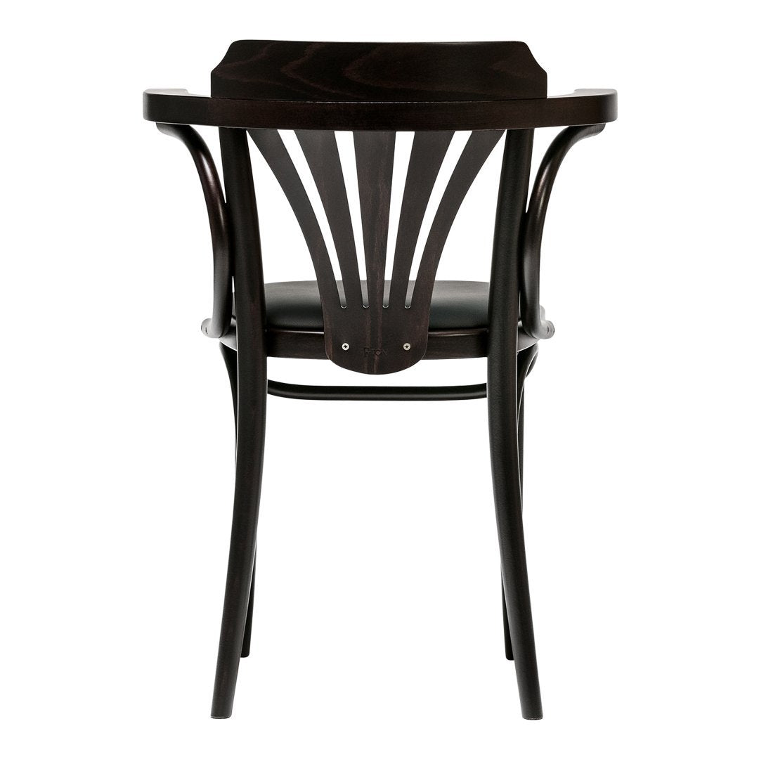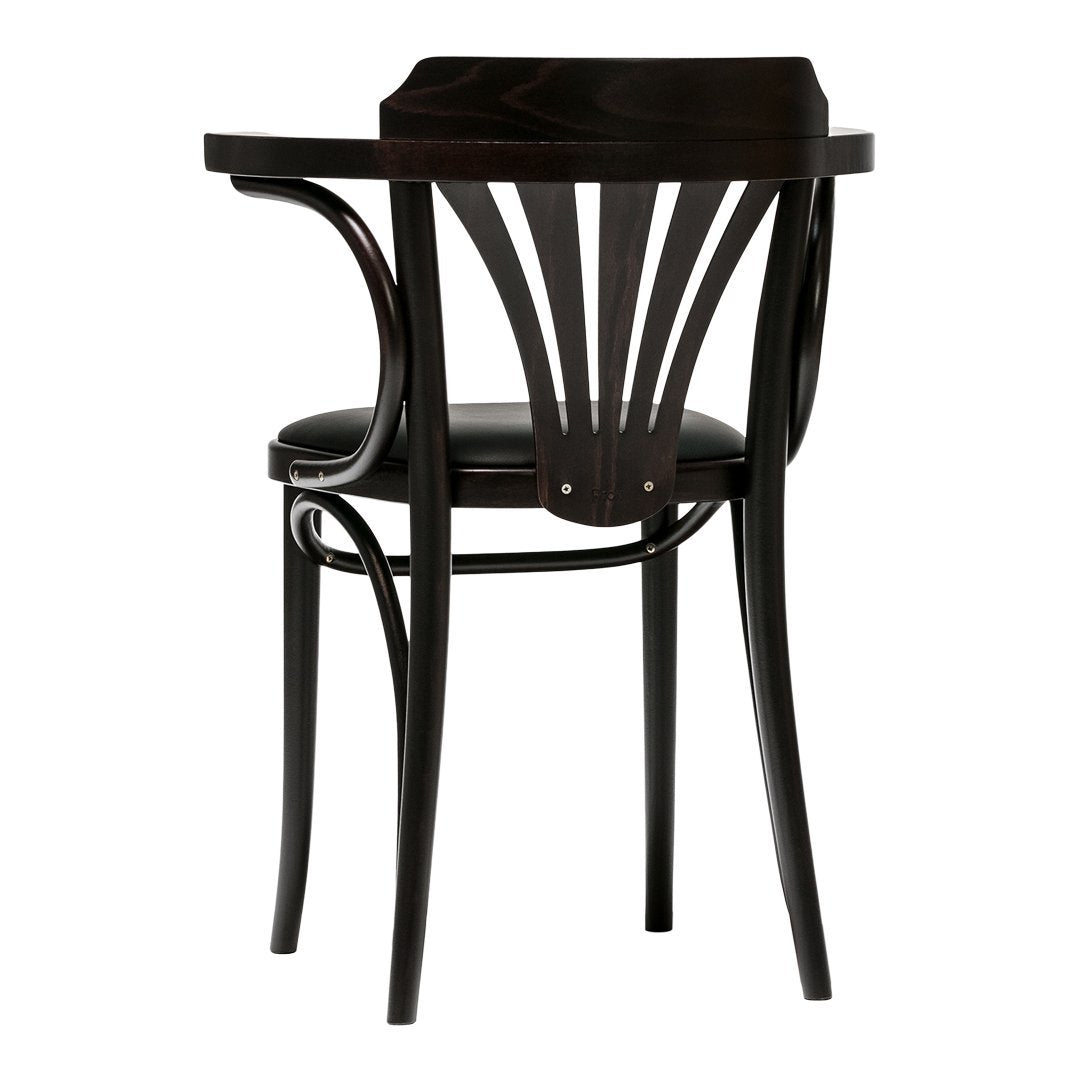 This traditional armchair has a characteristic fan filling the backrest. The plywood seat can be upgraded with a relief and the upholstered version with decorative studs framing the seat and top part of the backrest.