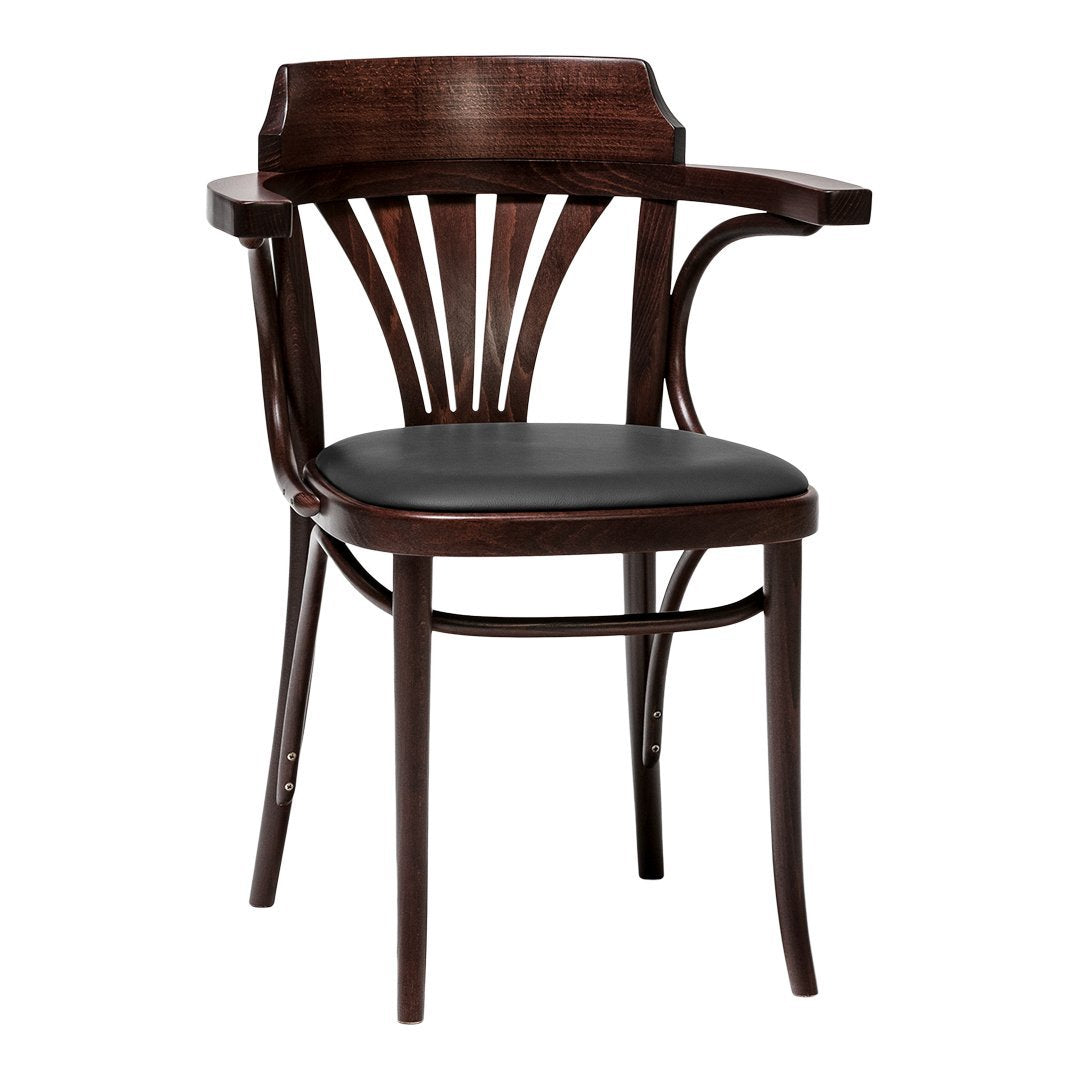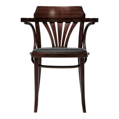 This traditional armchair with a characteristic fan filling the backrest is very similar to a model No. 24. The main differences are in a seat size and overall height which is bigger in the No.25. It can be supplied in plywood or upholstered with/without decorative studs.