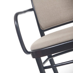 The armchair, inspired by a model from 1930 by Josef Hoffmann, blends his interest in Art Nouveau and simple shapes with manufacturing processes applied in Bystrice pod Hostynem since 1861. The armchair is therefore more geometrical, but bears the clear features of the manual bending technique of TON.