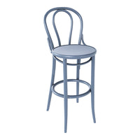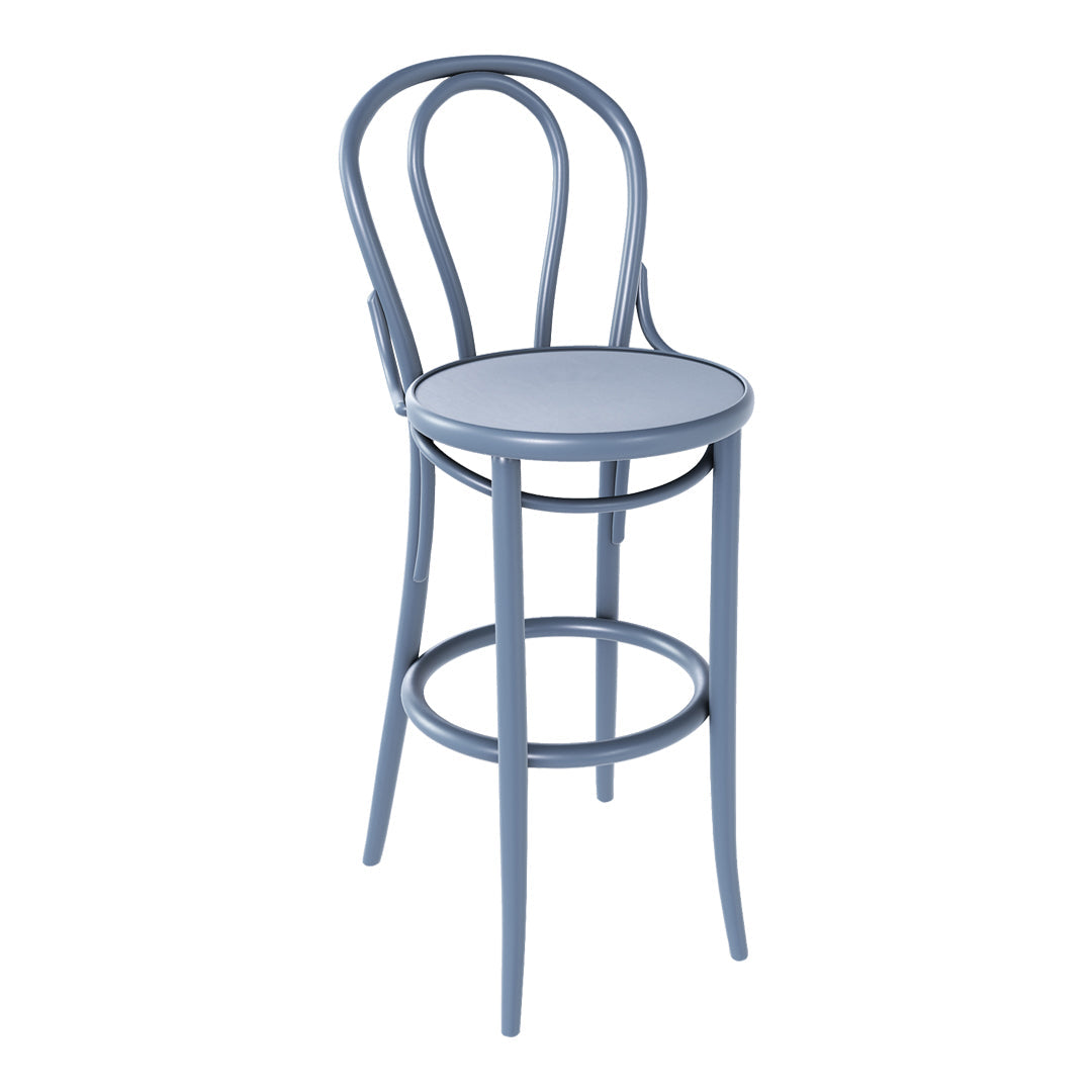 This barstool is based on the traditional model No. 18. The backrest is filled with a bent detail, the seat can be upholstered. If plywood is used, four types of decorative reliefs are available.