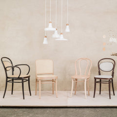 This manually bent chair has a seat and a backrest upholstered or covered with cane. This highlights the traditional shapes which give a very fine and elegant impression.