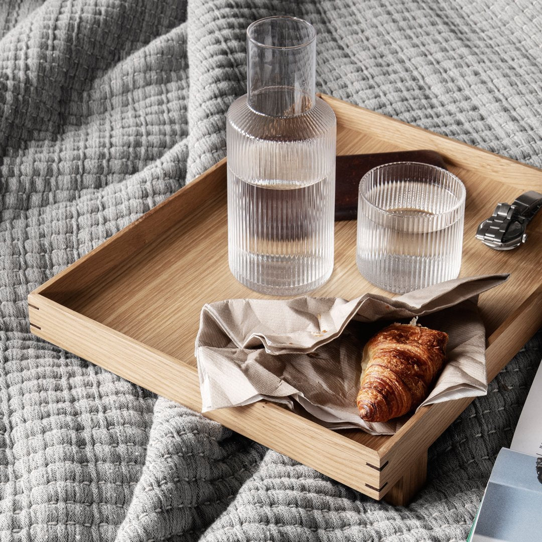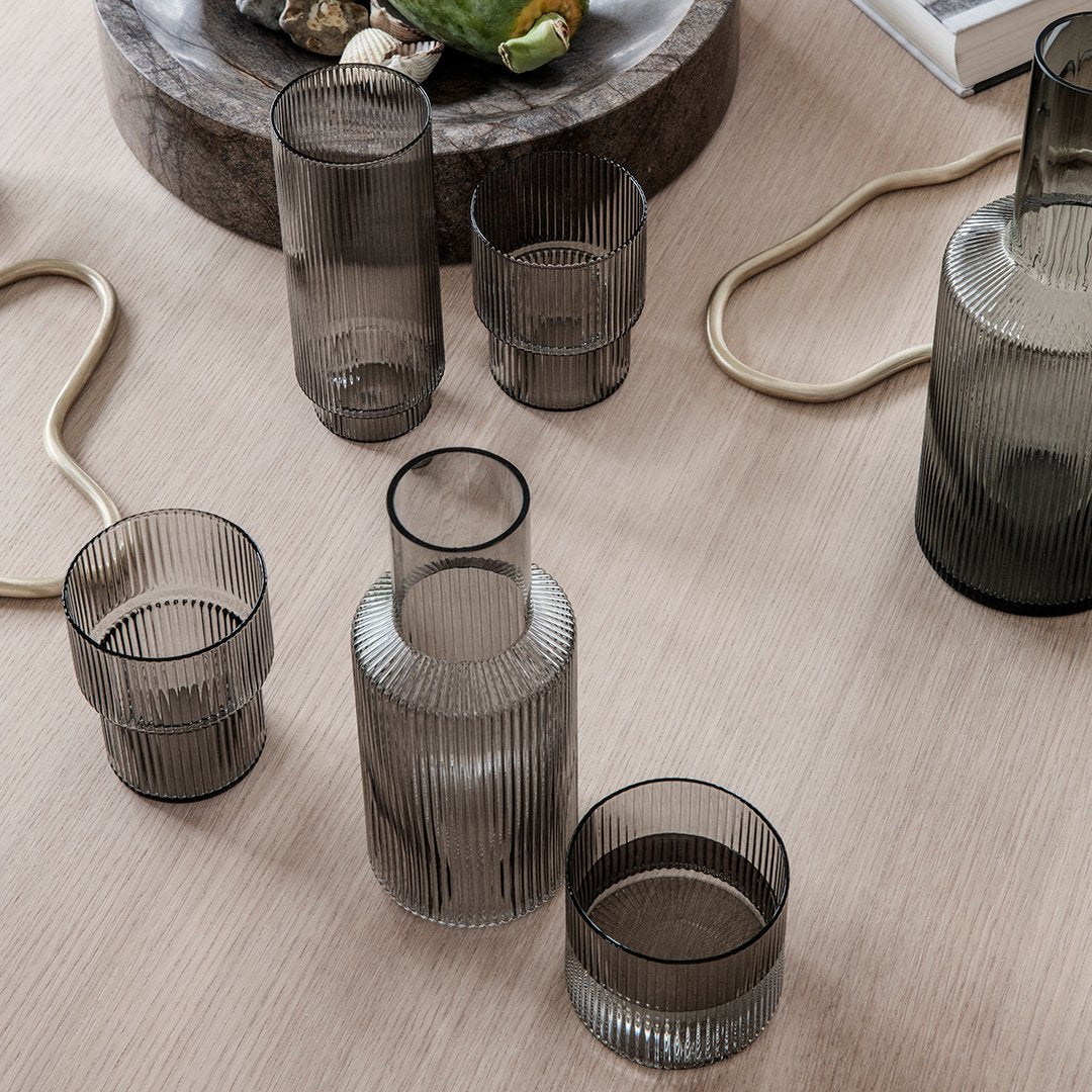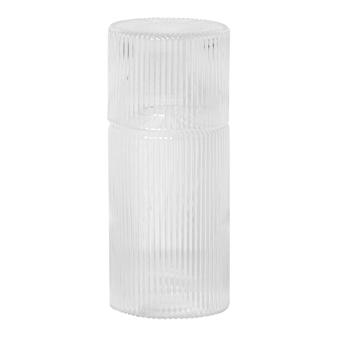 Stay hydrated all day long with this handy little set of carafe and glass, which doubles as a lid for the carafe. The set features the characteristics of the series with the rippled mouth-blown glass. It can be your healthy office accessory or a new favorite on the bedside table.