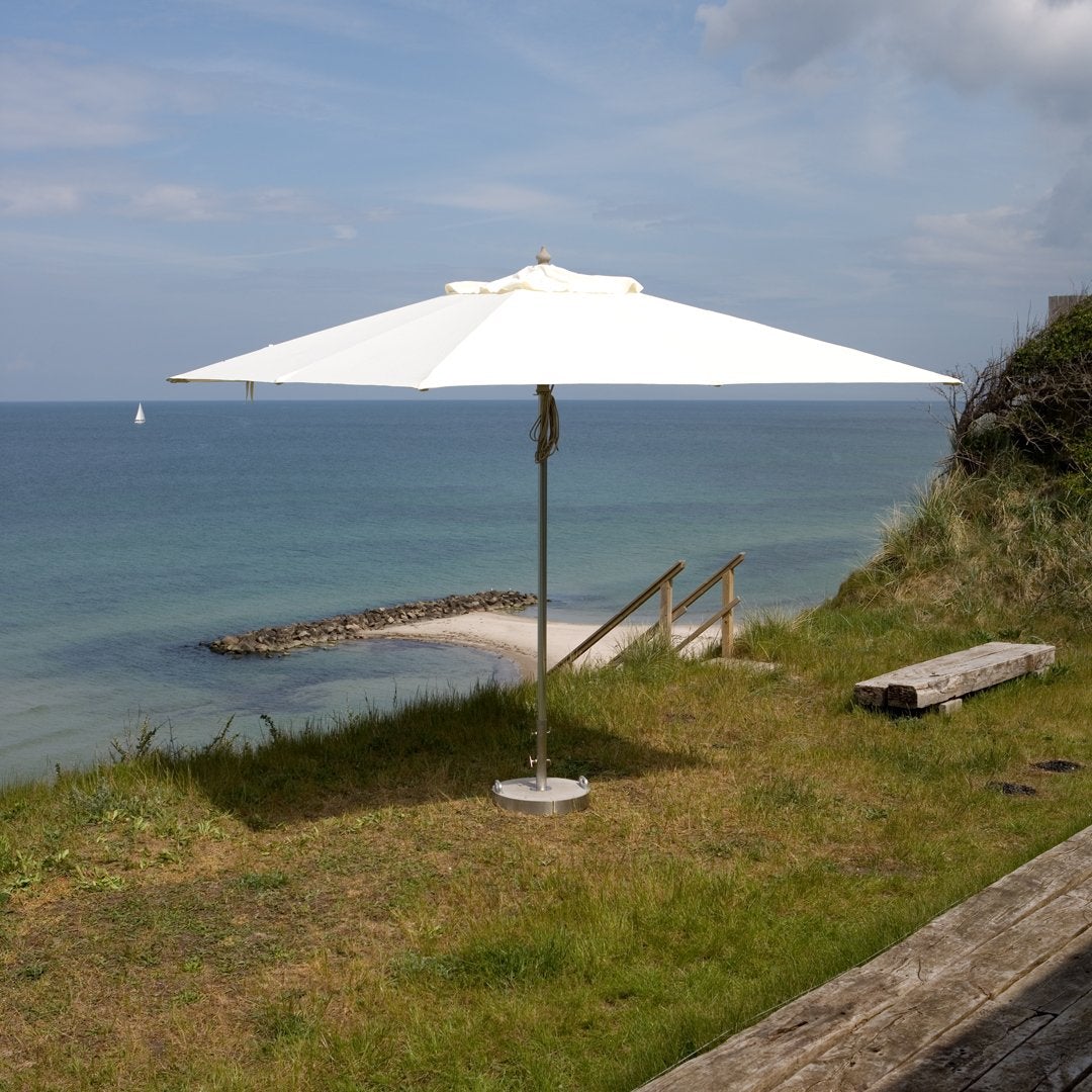 Keep cool under the shade of this round Messina umbrella and enjoy your outdoor space to the fullest. Build from long-lasting materials and with a classic design, Messina will protect you from the sun and guide you comfortably through hot summer days for many years to come. This round version is partly metal-reinforced, making it a perfect match for most outdoor tables with an umbrella hole.