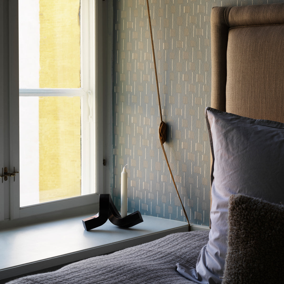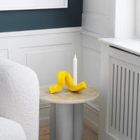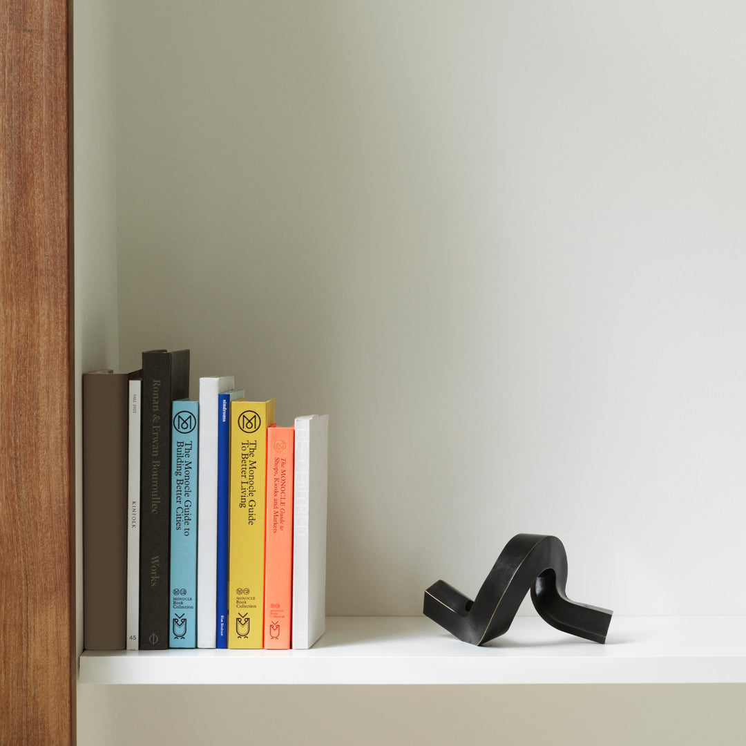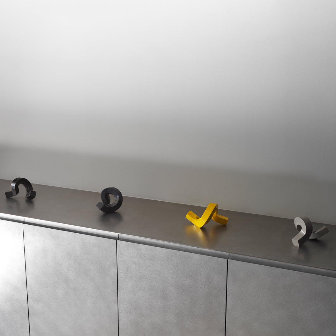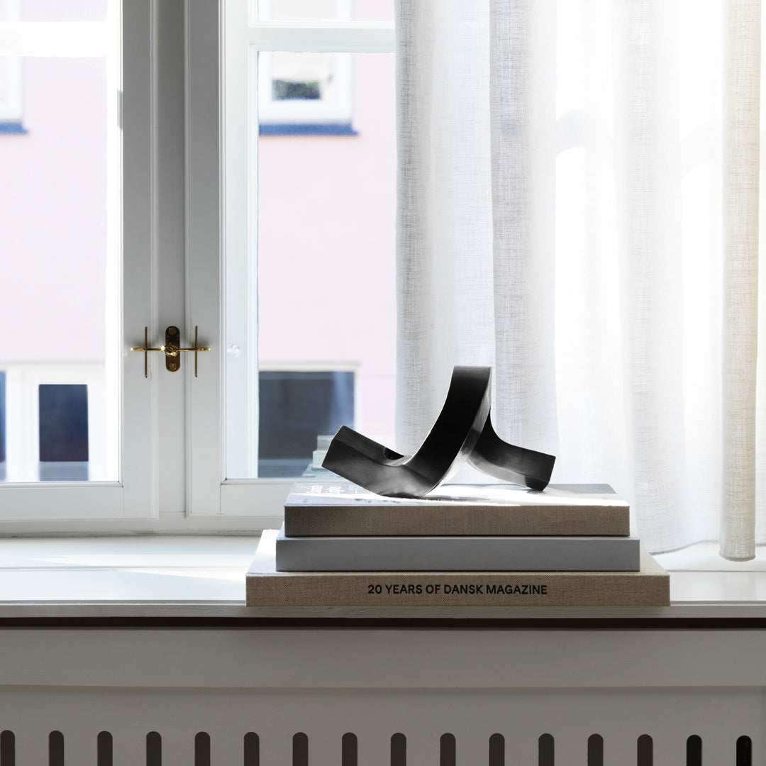 Crooked is a candlestick and decorative sculpture in one. A tribute to the designers love of "crooked" characters, Crooked draws inspiration from the intersection of design, art and architecture. Crooked Candlestick comes in two versions with room for either one or two candles, and in either painted aluminum or bronzed brass.