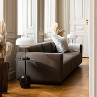 Develius is comprised of 16 different modular sofa components varying in depth, width and shape from rectangular to square. Including versions with and without arms, as well as a variety of poufs and the option of lush, loose cushions. Create a cozy corner in a private space. Or a lavish lounge area in a more public arena. Assemble a love seat for two or an expanded version for four or more. You could even use the pouf as an informal side table. The possibilities are practically endless.