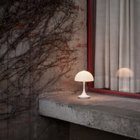 Please note that Panthella Portable comes with a USB cable but without an adapter and QI charger. Compatible with standard USB adapters (Min. 1.5A) and QI wireless chargers.