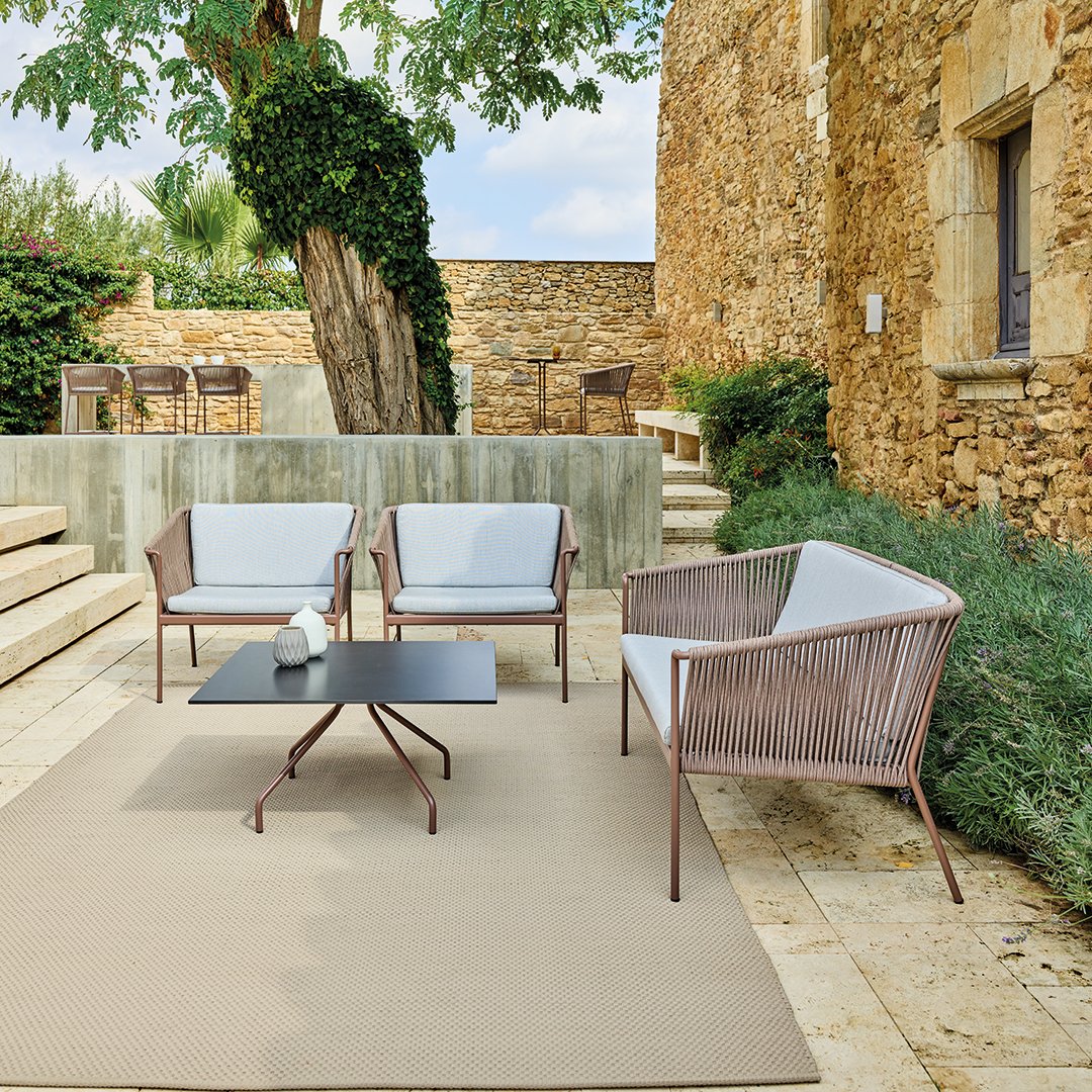 By meticulously weaving each fibre together, just as the Baya Weaver birds build their nests, this collection evokes the tradition of wrapping, grabbing and knotting the rope structures from which the company was born 100 years ago. Sitting or reclining in an armchair, lying down, rocking… everything is possible with the more than 15 pieces of furniture offering an endless number of variations when it comes to create relaxing, outdoor spaces.