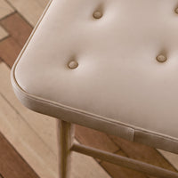 The Foyer Bench has a delicate idiom and is meticulously upholstered with handmade buttons. The Foyer Series was exclusively created by Vilhelm Lauritzen for Radiohuset in Copenhagen in 1945.