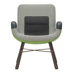Products designed by Hella Jongerius exhibit her unique manner of fusing industry and craft, high- and low-tech, traditional and modern characteristics which are also evident in the East River Chair: with its distinctive form and casual combination of such diverse materials as wood, metal, leather and fabric, this small armchair clearly bears the Dutch designer's signature.