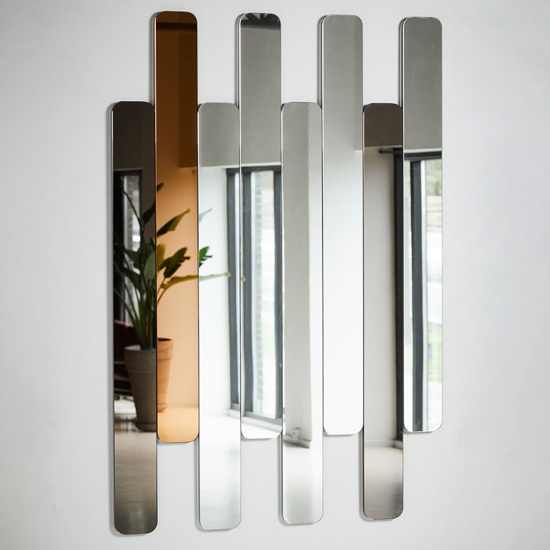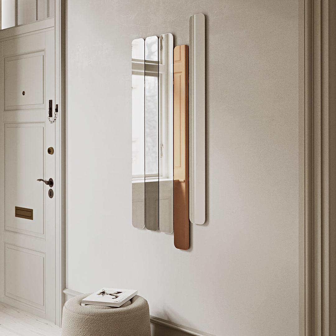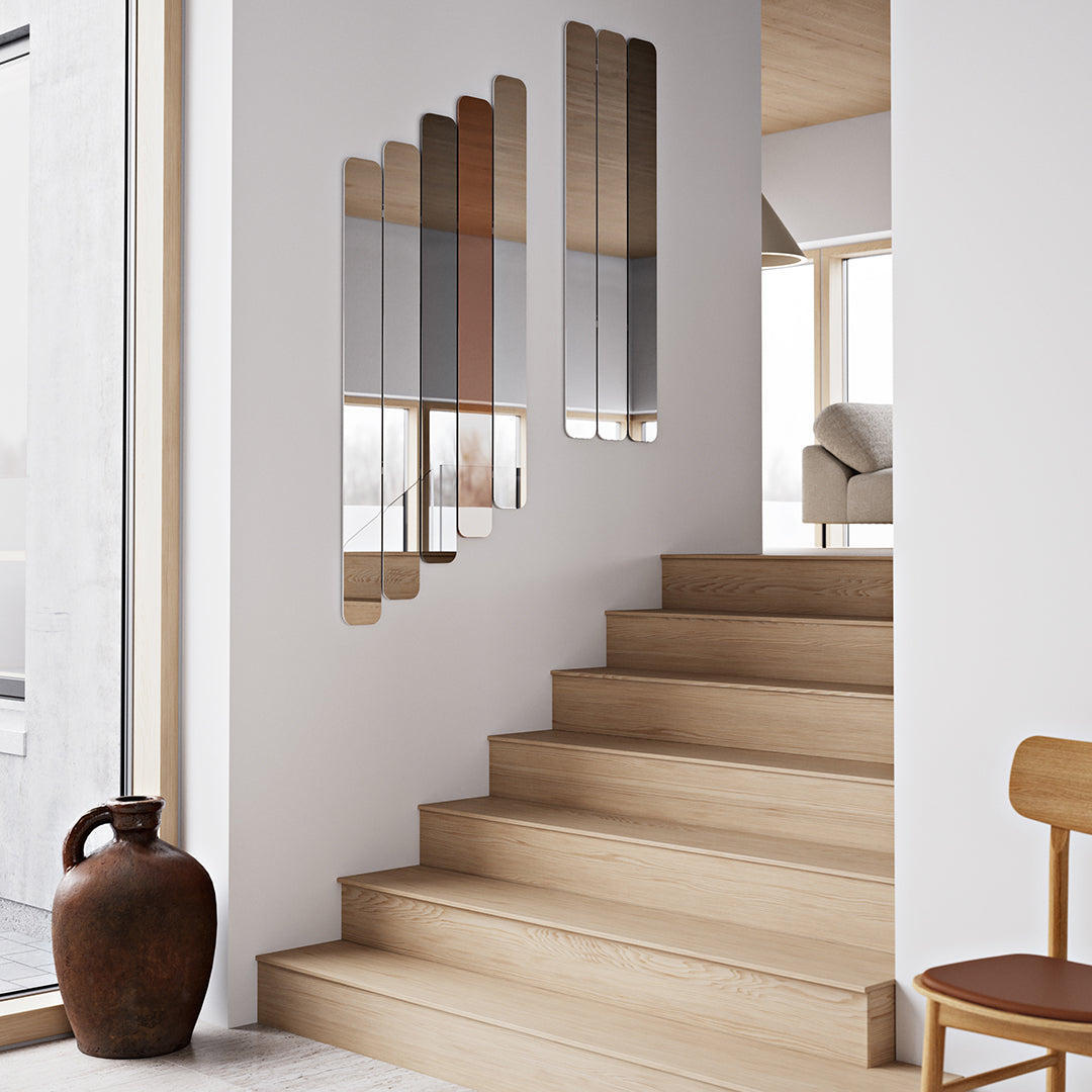 The name 'Logs' stems from the designer's source of inspiration, found in the calmness of the Nordic birch forests. Embodying the repetition of numerous trees, this aesthetically versatile piece echoes the identical shape of the mirrors. Simultaneously static yet softly organic. The individual mirrors can be placed at different heights to obtain a wavy effect, allowing you to construct a personalized expressiong. From artistic creations to balanced appearances.