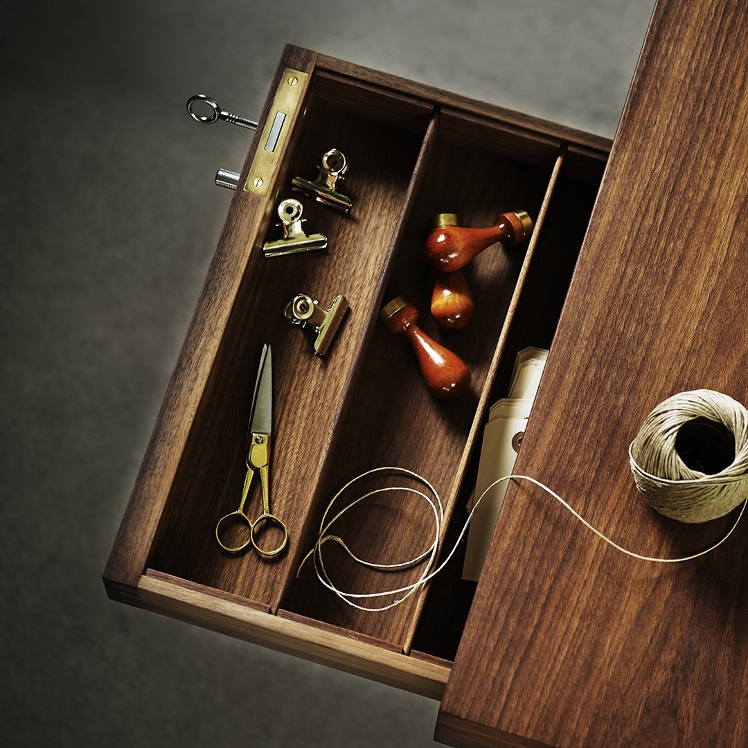 The simple, strong lines of Wegner's desk exude serenity; sumptuous materials and exquisite craftsmanship deliver to create lasting value. The expansive desktop provides ideal conditions for big ideas. The dovetailed drawers are great places to keep the devilish details. Available in oak or walnut.