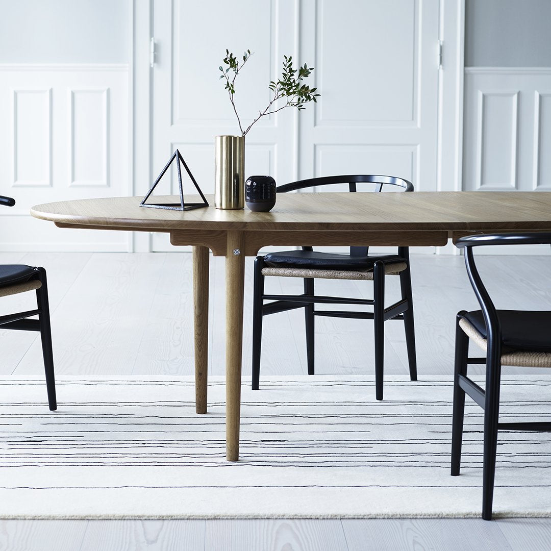The CH339 Dining Table comes with 1 supporting wooden leg and hardware for 2 leaves (sold separately), or with 4 supporting wooden legs and hardware for 4 leaves (sold separately).