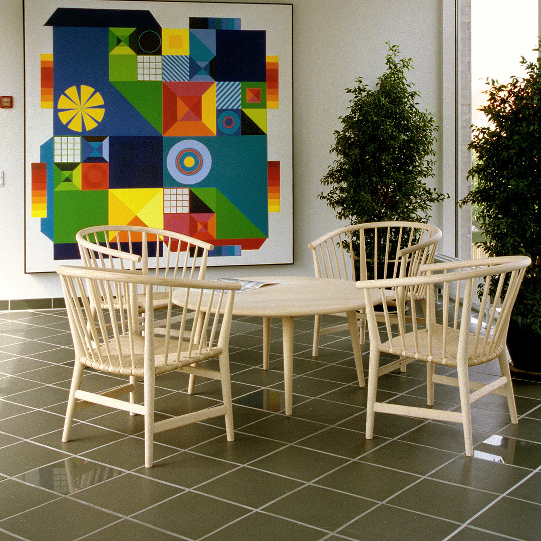 The chair was designed for PP Møbler in 1978 by Hans J. Wegner. PP 112 is almost a design hybrid, comprising features from his series of Chinese chairs and his many attempts at drawing a modern English Windsor chair. Consequently, this easy chair is light and elegant. Its design shows Wegner's traditional insistence on simplicity in construction and design.
