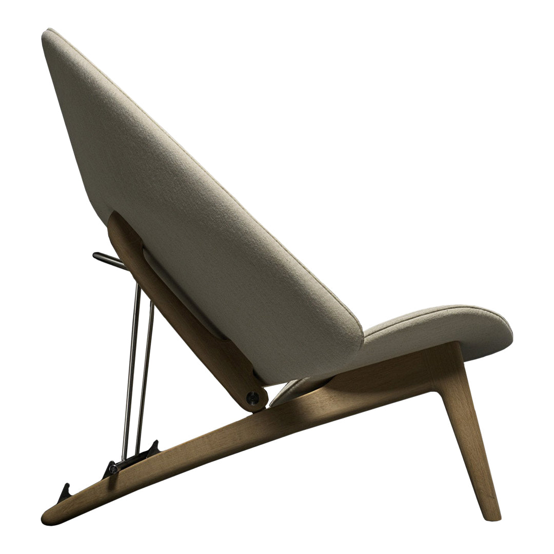 Even besides the complexity of the back, the Tub Chair is a unique fusion, where Wegner merge the moulded plywood technique with upholstery and traditional work in solid wood and even adding a metal angle adjustment mechanism for the back. It is one of the most striking and brilliant examples of Wegner’s vision and courage, and still it is a most practical, usable and comfortable chair.