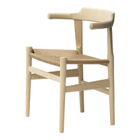 Originally this chair was designed by Hans J. Wegner for the DSB (Danish Rail) ferries, however DSB ended up choosing another of Wegner's chairs, PP 208. Subsequently he continued working on the design, and in 1987 PP Møbler started the actual production of the PP68 Chair. With The PP68 Chair, Wegner created comfortable dining chairs suitable for long, cosy evenings around the dining table. As opposed to many of Wegner's more elaborate models, the short armrests have been designed enabling them to, partially, fit under the table, and it can also hang from the table top to make cleaning easier. Each solid wood tenon joint has been tested to withstand one ton of pulling strength.