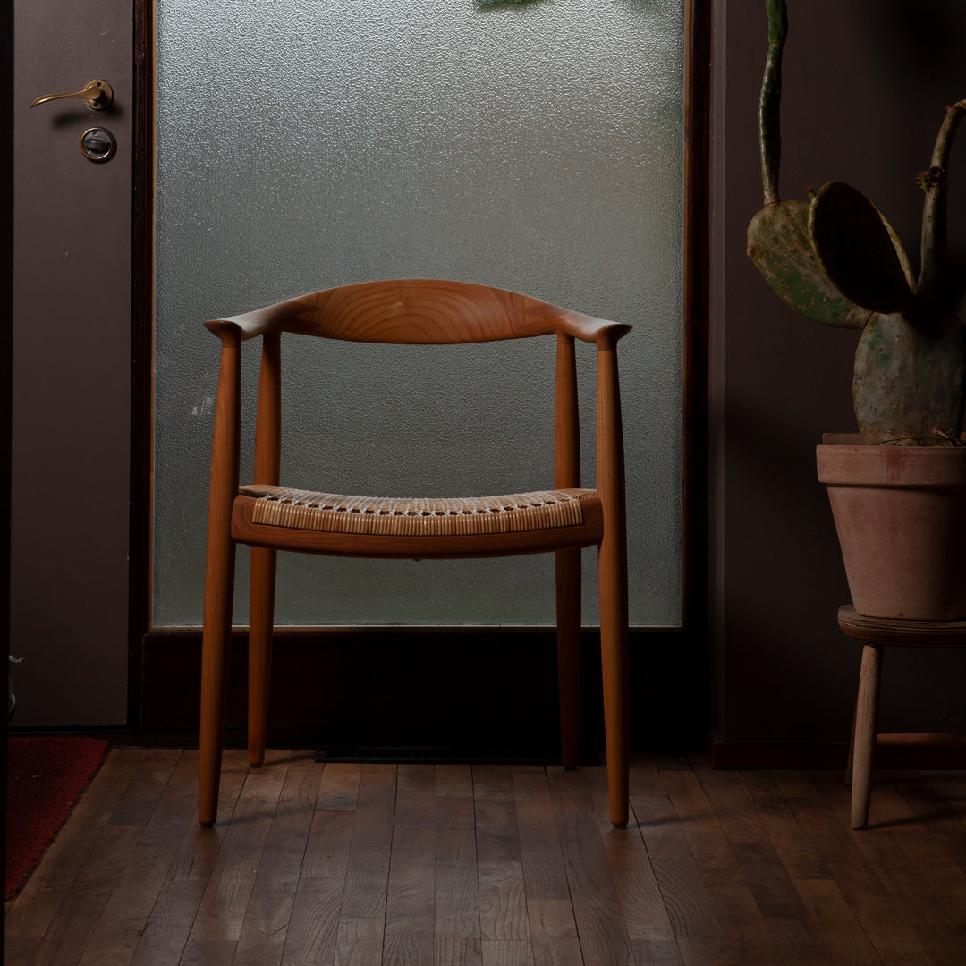 'The Round One' as Wegner referred to it with his usual provincial modesty, is perhaps the most famous Danish piece of furniture of them all - which says a bit. Already a year after the production of this chair startet at Johannes Hansen Møbelsnedkeri A/S, it was noticed by the American magazine for design and architecture, 'Interiors'. This turned out to be the beginning of Danish design's great international breakthrough. Yet, Wegner remained rather unimpressed with his own creation 'They could have made this hundreds of years ago - nothing new here' he uttered at several occasions, referring to the basically very traditional construction.