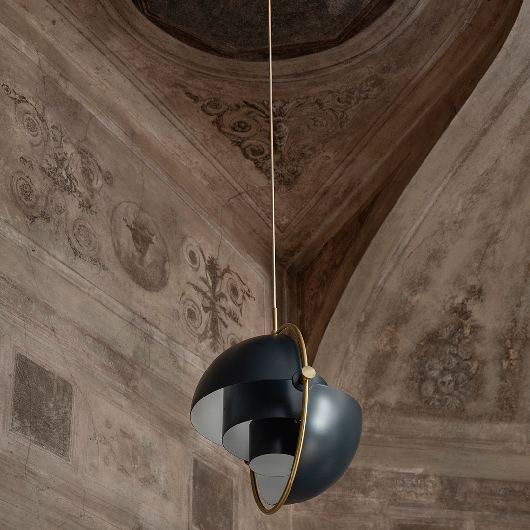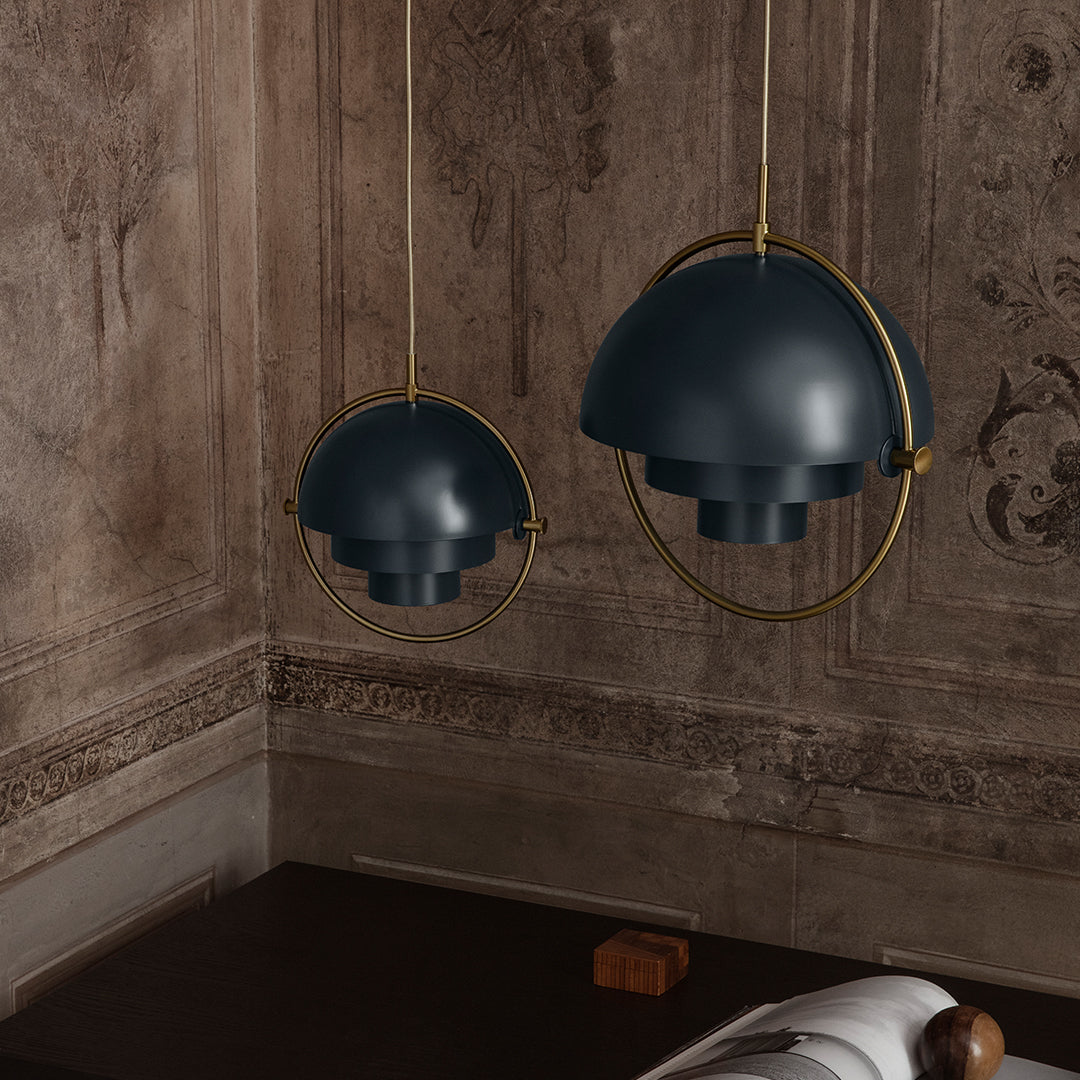 Available in large and small sizes, the Multi-Lite Pendants introduce head-turning sculptural beauty to the heart of any room – whether suspended above a dining table, illuminating a kitchen countertop, or as an artistic cluster of feature lighting.Comprising two rotating quarter-sphere shades encircled by a metal ring, the pendants can be adjusted to provide whatever type of light the occasion requires – from soft and ambient to sharp and focused.
