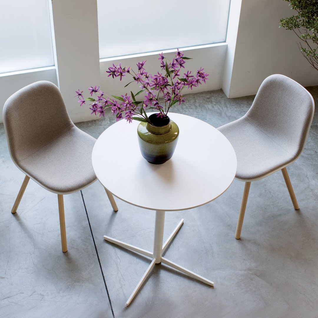 Welling Ludvik has developed a completely upholstered interpretation of the Máni collection. As in the plastic and ash veneered multi-layer wood versions, the shell is combined with sixteen different steel, aluminium or solid ash wood frames, along with a modular bench system. The cutomizable, all-rounder Máni fabric collection is suitable for furnishing domestic spaces whilst accessories such as armrests, writing tablets and chair trolleys make it perfect for contract settings. A wide range of upholstery – fabric or faux or real leather - to choose from.