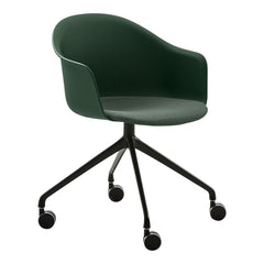 Mani Plastic Armshell Armchair - Black Painted Aluminum 4-Star Base w/ Casters - Seat Upholstered