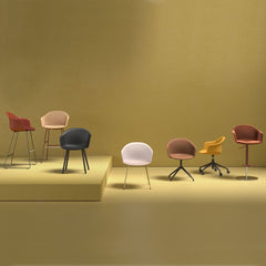 An extension of the Mani collection, which is inspired by the perfect combination of functionality, comfort and aesthetics, Mani Armshell Fabric is in effect an independent project, a monocoque armchair with soft and enveloping contours, fully upholstered. Versatile thanks to the variety of bases available - from wooden or metal legs to the sled, from the swivel perch to the wheels - it stands out for the tactile quality of the upholstery, which makes the sitting experience even more pleasant. Mani Armshell is also available in the Plastic version, with shell in polypropylene and seat in wood, upholstered or in polypropylene.