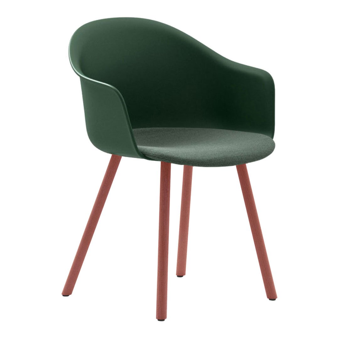 Mani Plastic Armshell Armchair - Cherry Ash Base - Seat Upholstered