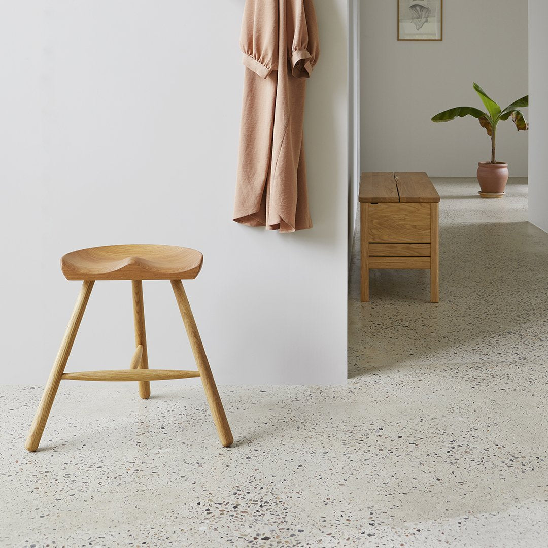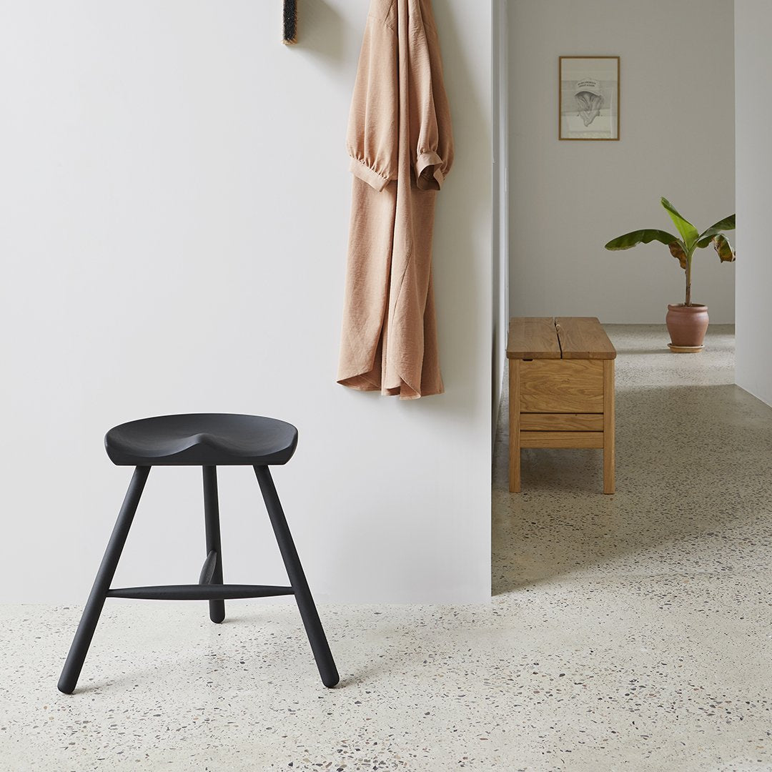A true classic made in Denmark since 1936 – where it still to this day is produced by our local joinery.The seat is shaped out of one large solid piece of wood and because of the variations in the woodgrain, every Shoemaker Chair is completely unique.Together, the turned legs and the stabilizing T connection create a harmonic and aesthetic piece of furniture with strong references to the Nordic design universe.