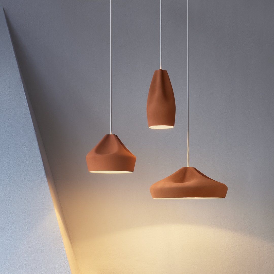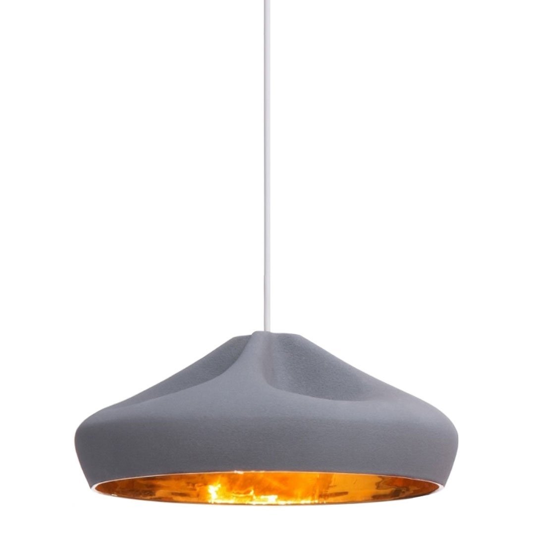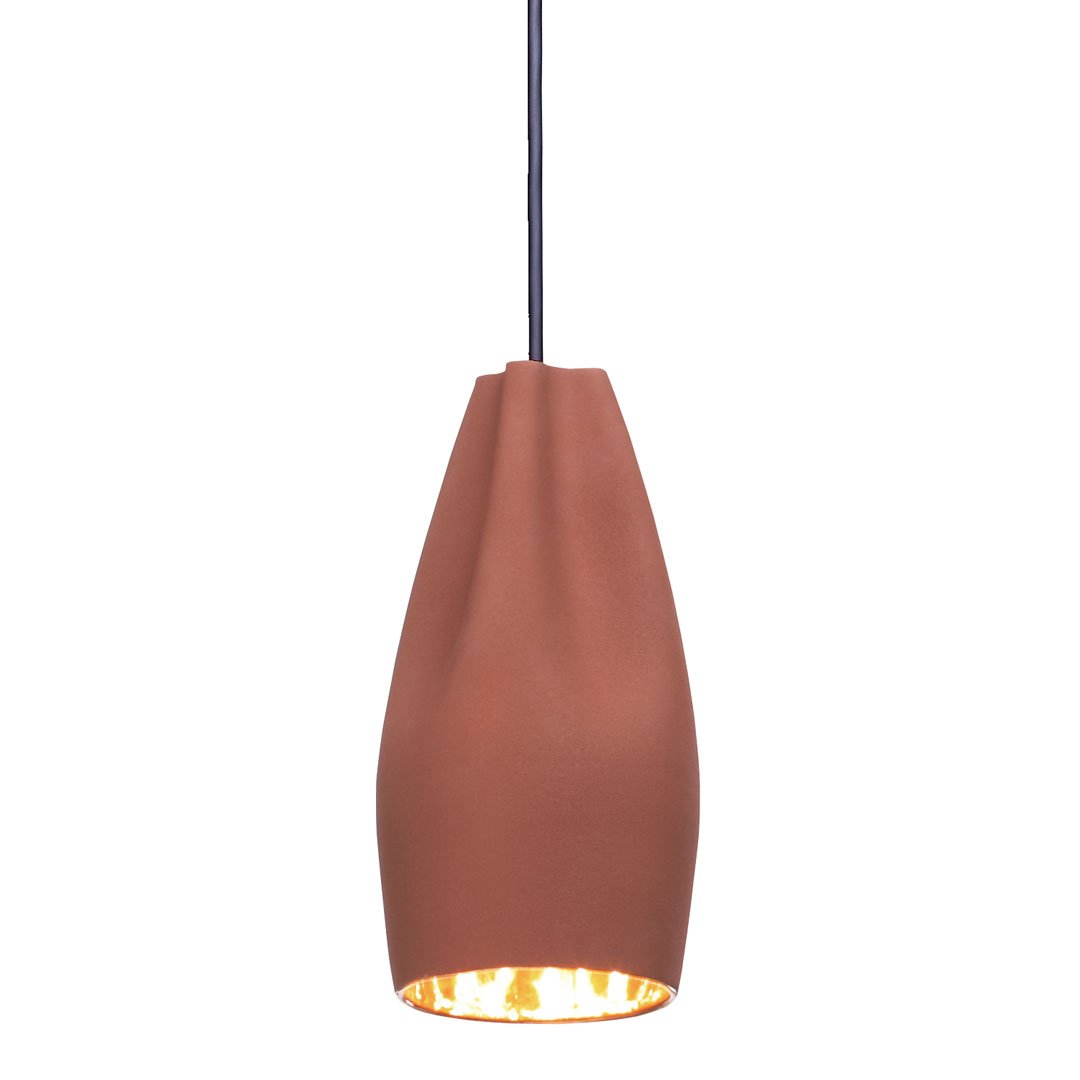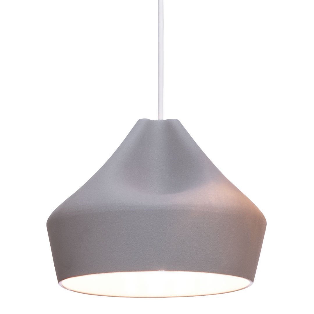The outer part of the lamp is offered in white ceramic, black, terracotta, and Grey– the direct result of recycling different enamels. The interior is available in brilliant white enamel, which enhances the luminous light from the lamp, or 24k gold, which generates an extremely warm light.