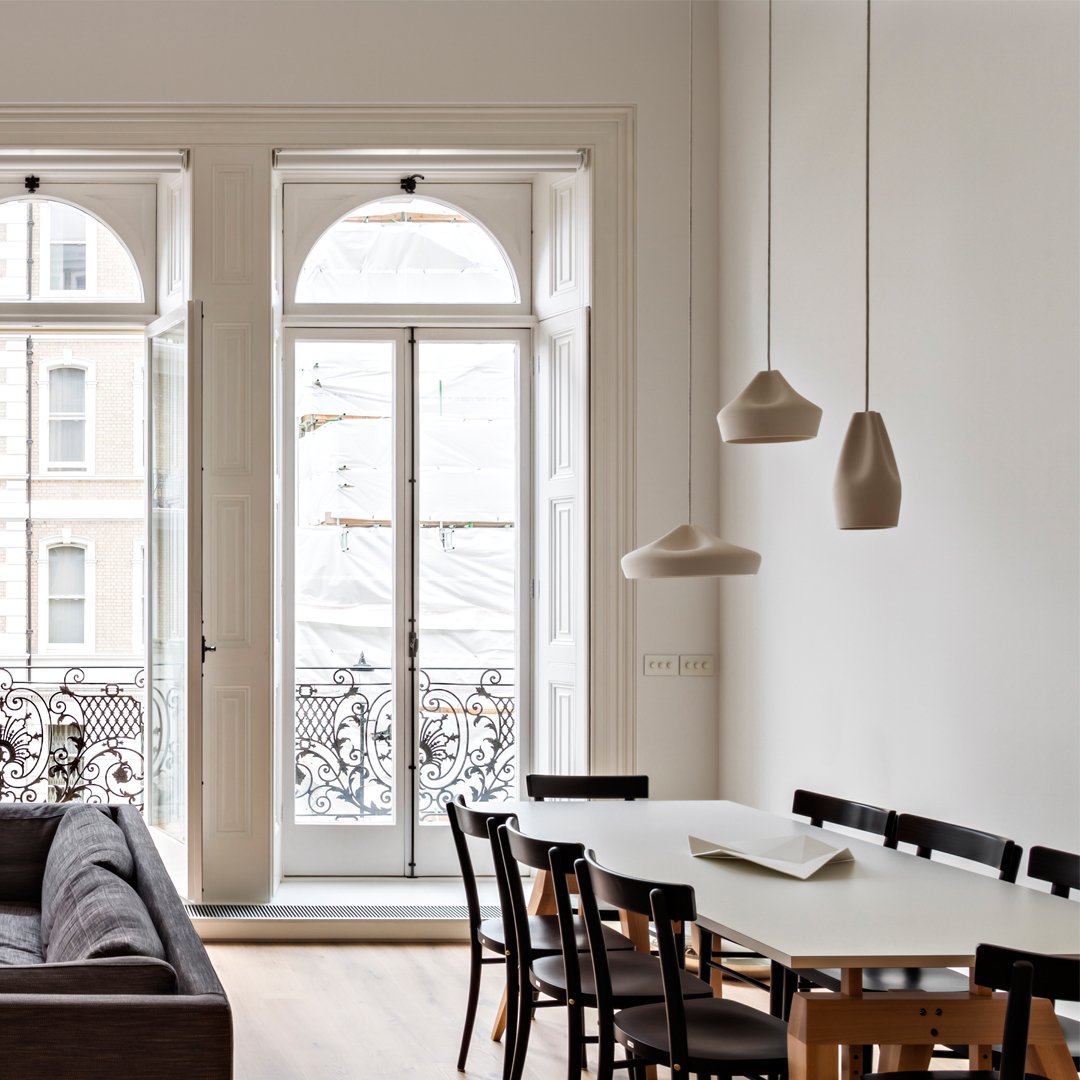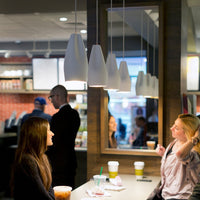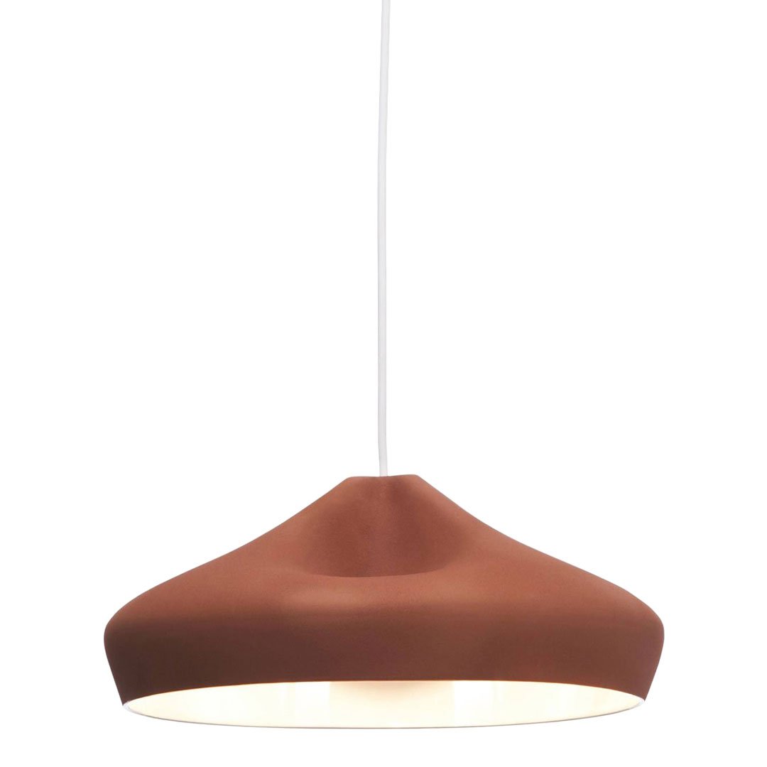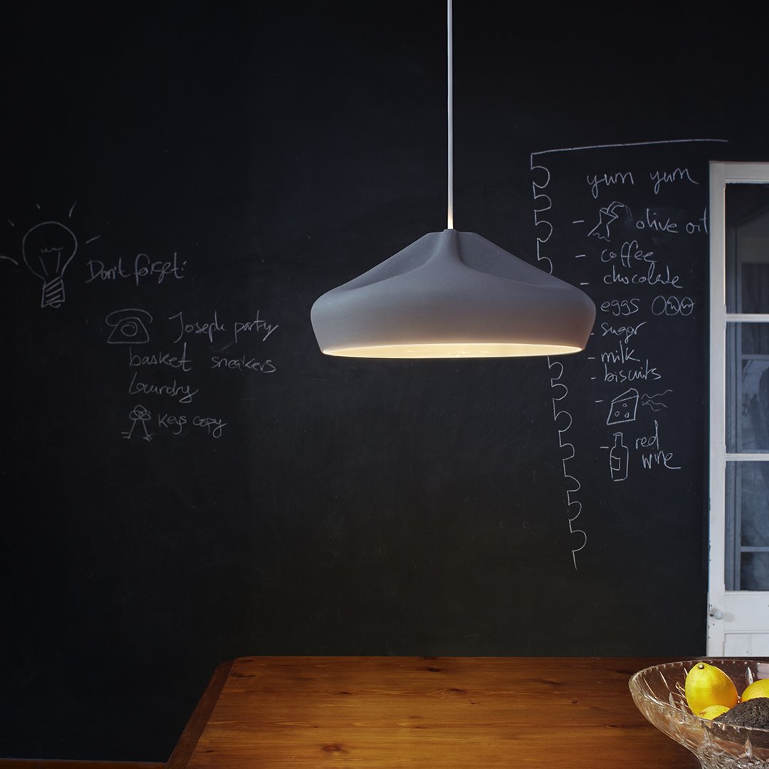 The outer part of the lamp is offered in white ceramic, black, terracotta, and Grey– the direct result of recycling different enamels. The interior is available in brilliant white enamel, which enhances the luminous light from the lamp, or 24k gold, which generates an extremely warm light.