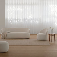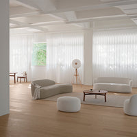 The Ynez Collection introduces a sofa series where sculptural lines meet classic design, capturing the essence of romance through its curved silhouettes and soft geometric forms. Its name, meaning "Pure" in ancient Greek, reflects this purity in design, offering a range of pieces from petite armchairs to two-seater sofas and ottomans that feel both modern and nostalgic.