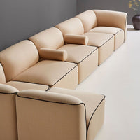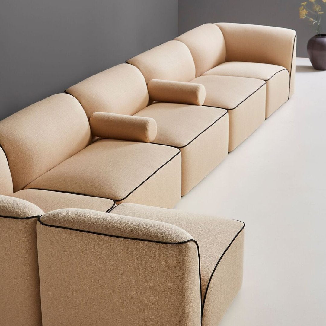 The Flora modular sofa is inspired by the natural shapes of vegetation and how petals of flowers grow in organic ways. With this concept in mind, the Spanish design studio Yonoh wanted to develop a modular sofa series with the outlines of a petal flower. Designed by compose perfectly while staying organic and soft shaped. The result is four different modules with the distinctive black piping and an armrest cushion, which allows for an unlimited number of combinations.