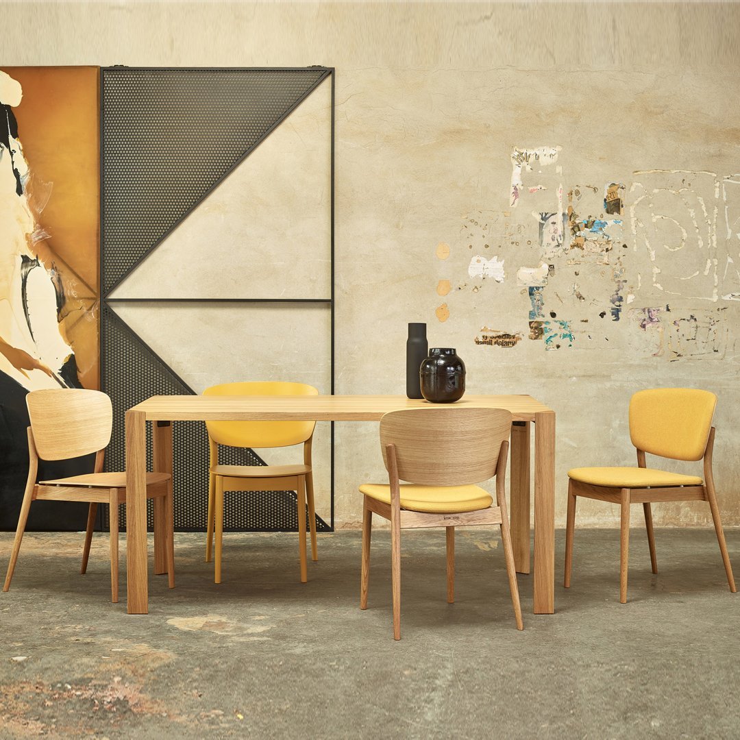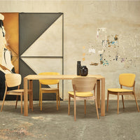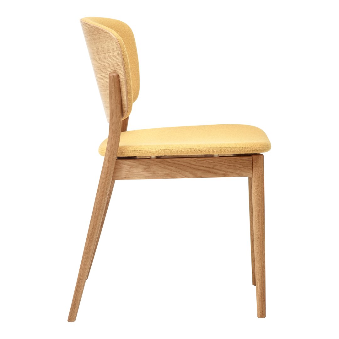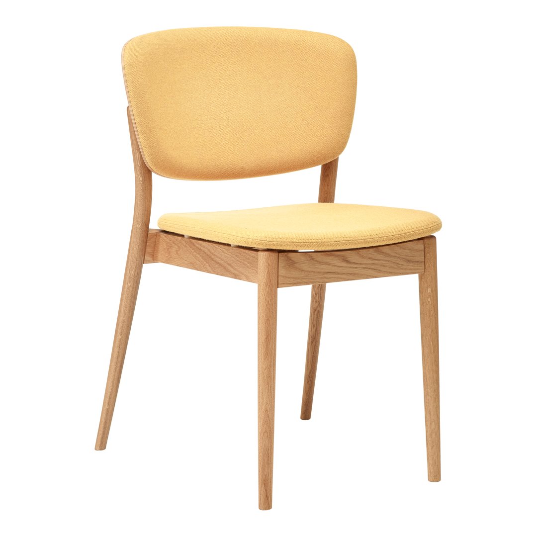 A classic chair that will last years and will never bore. Thanks to ergonomic design, the generous backrest and pressed plywood seat guarantee comfort. Solid wood construction, enhanced with skilfully bent wood, ensures strength and stability. The chair comes in upholstered versions and can be easily stacked