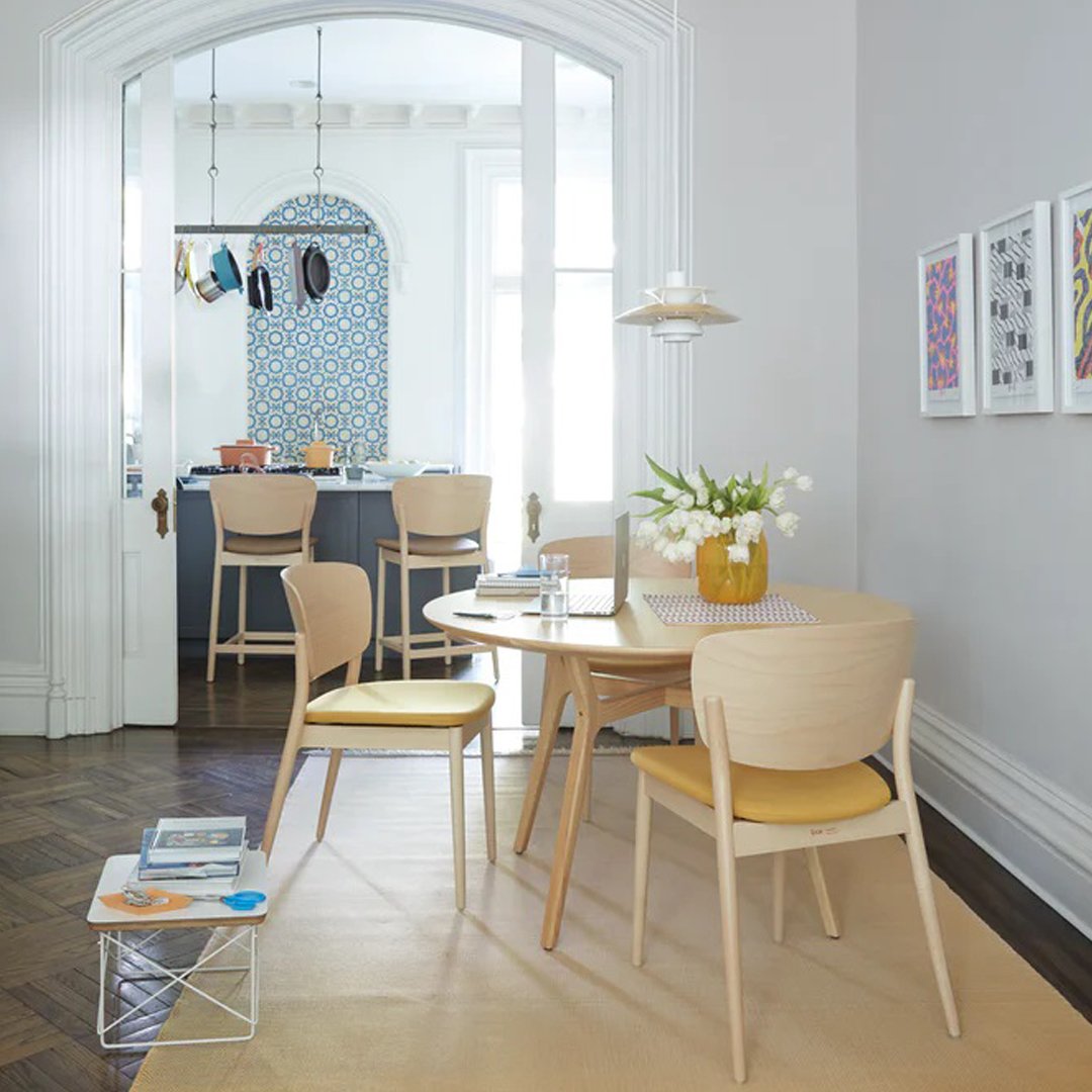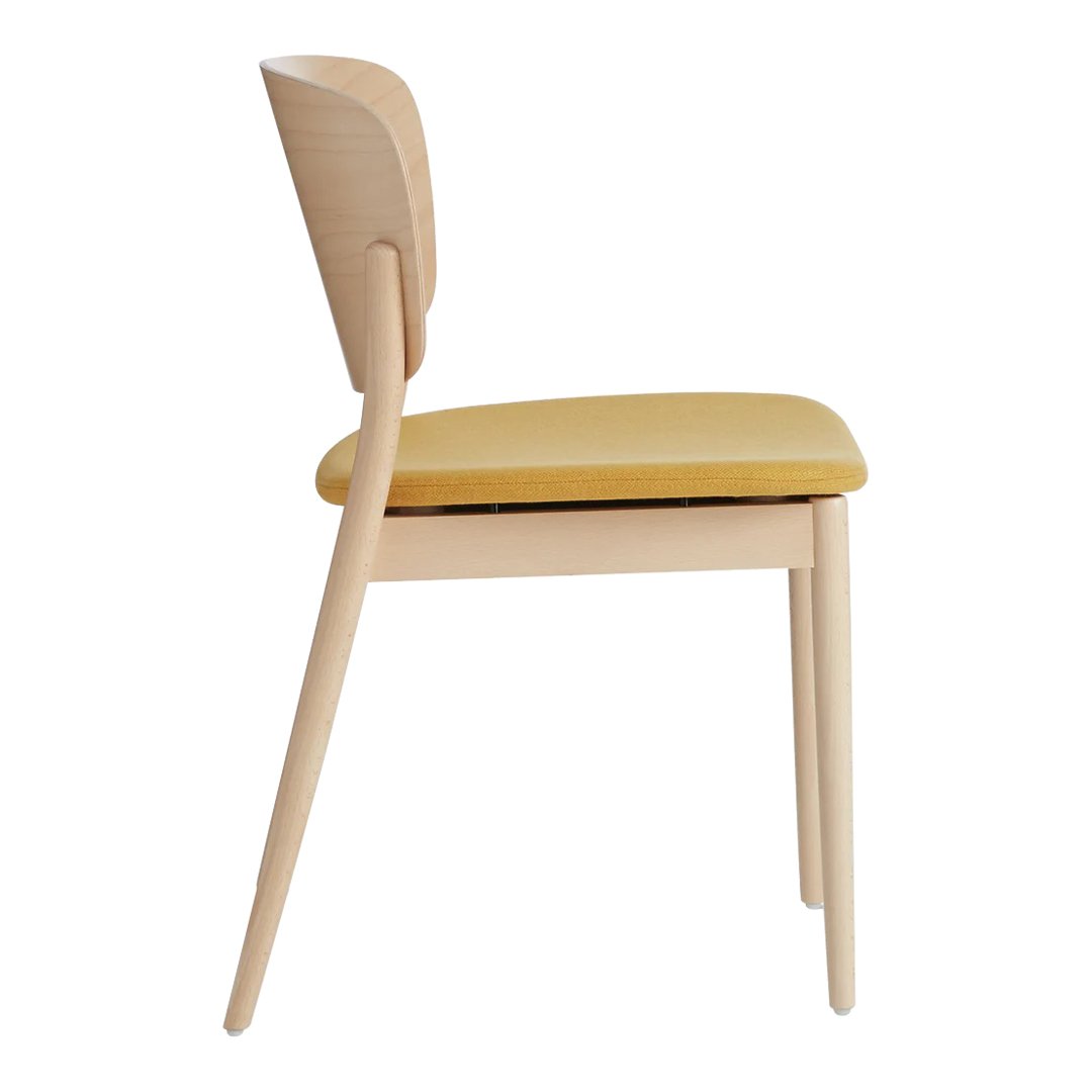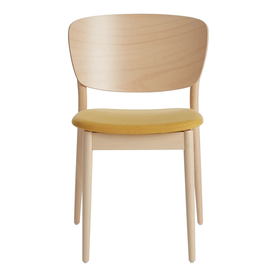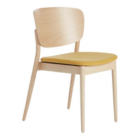 A classic chair that will last years and will never bore. Thanks to ergonomic design, the generous backrest and pressed plywood seat guarantee comfort. Solid wood construction, enhanced with skilfully bent wood, ensures strength and stability. The chair comes in upholstered versions and can be easily stacked.