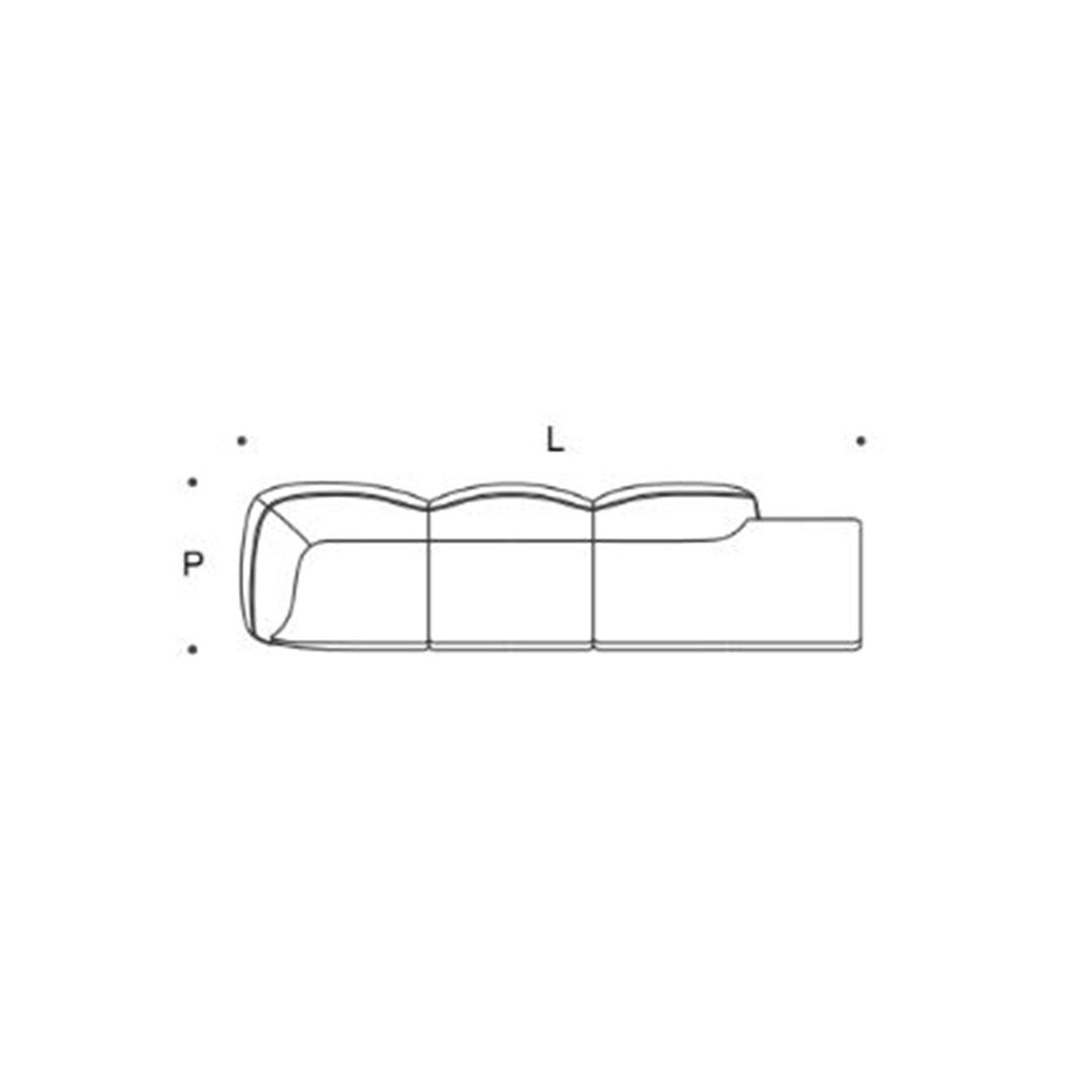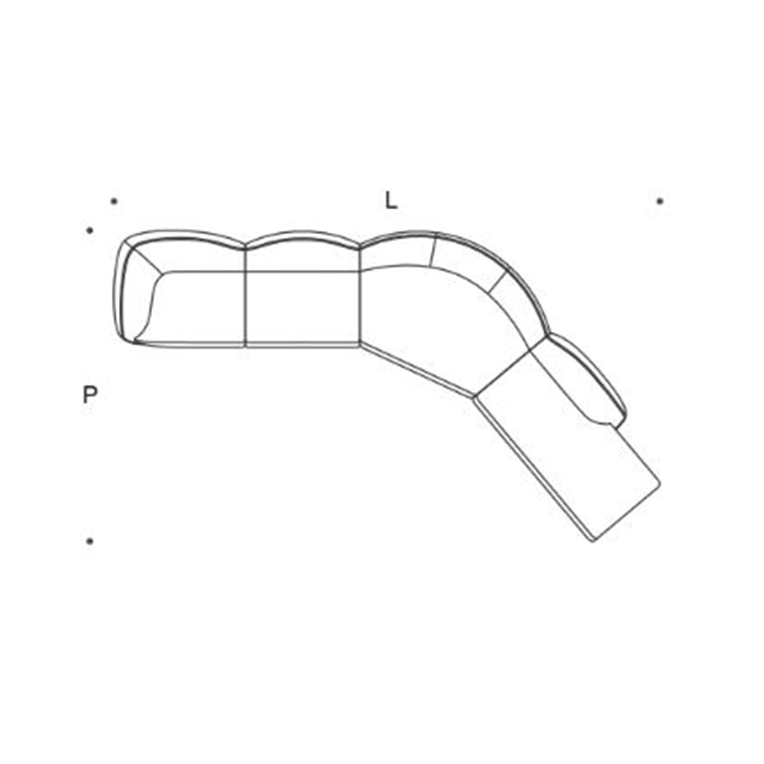4B - Curved Sofa w/ Open End: 183.5" L x 104.3" D x 29.1" H