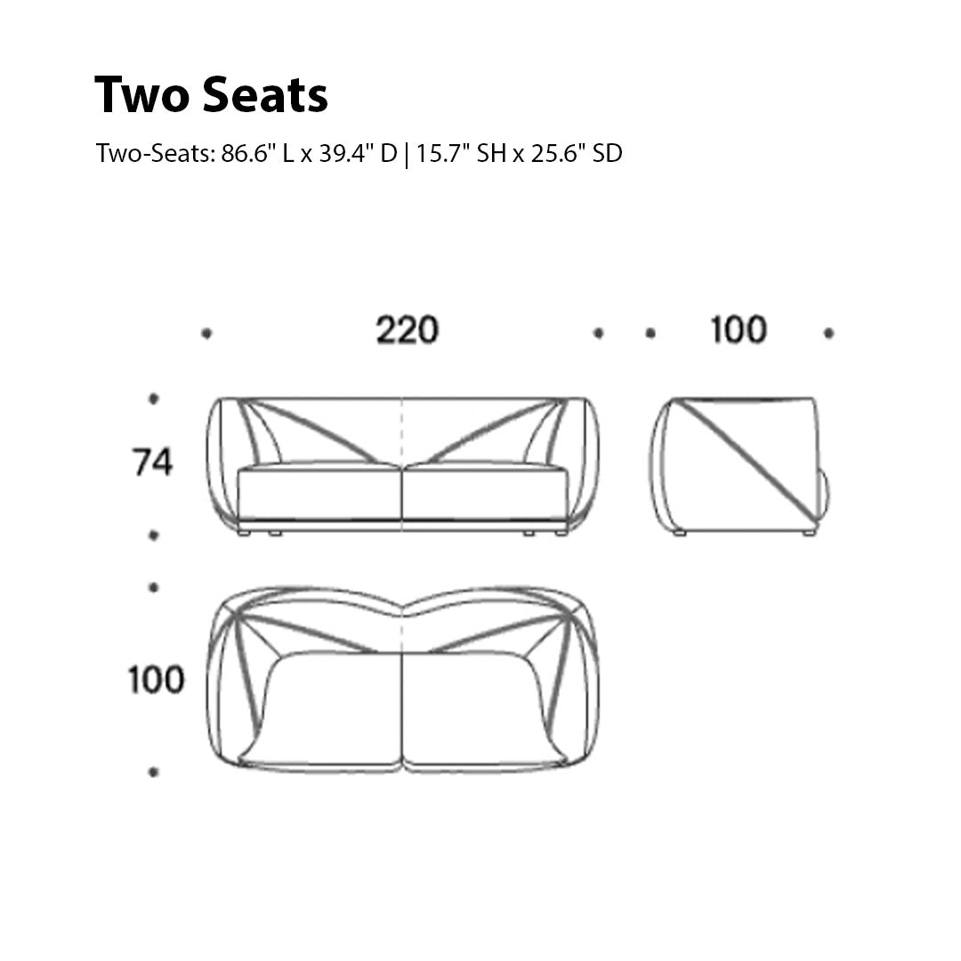 Two-Seats: 86.6" L x 39.4" D | 15.7" SH x 25.6" SD